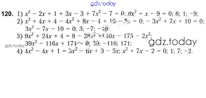 Ответы к Повторение (решение) 120 Учебнику по Алгебре для 8 класса Кузнецова, Муравьева Народная асвета 2015