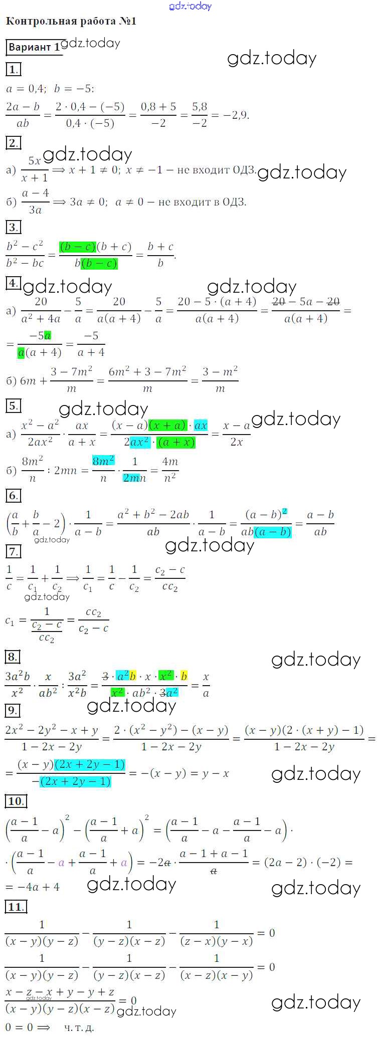 На страницах сайта gdz.today вы найдете учебный и вспомогательный материал, направленный на улучшения знаний школьной программы. ГДЗ - онлайн мир знаний Решение к контрольной работе 1. Варианты 1 Контрольным работам по Алгебре для 8 класса Кузнецова, Минаева Просвещение 2016