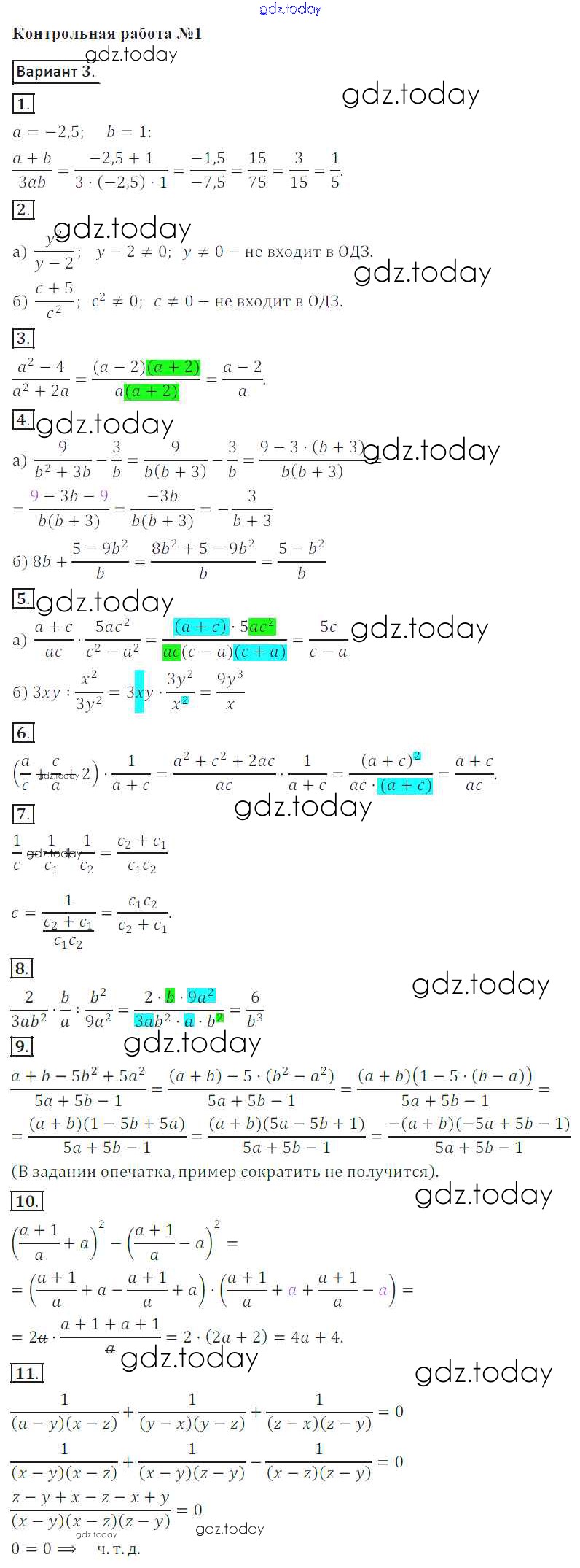 Ответы к Решение к контрольной работе 1. Варианты 3 Контрольным работам по Алгебре для 8 класса Кузнецова, Минаева Просвещение 2016