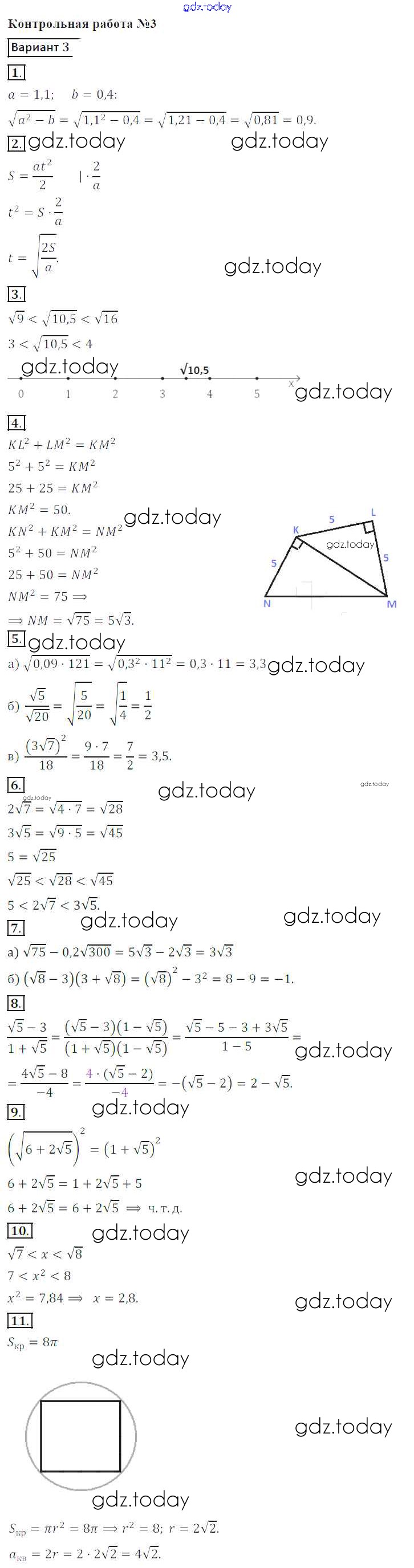 На страницах сайта gdz.today вы найдете учебный и вспомогательный материал, направленный на улучшения знаний школьной программы. ГДЗ - онлайн мир знаний Решение к контрольной работе 3. Варианты 3 Контрольным работам по Алгебре для 8 класса Кузнецова, Минаева Просвещение 2016