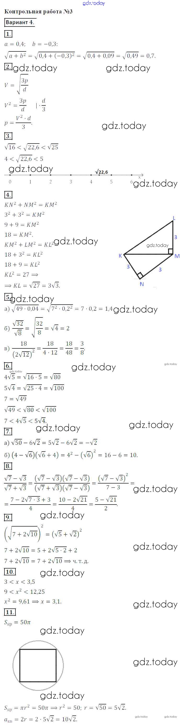 На страницах сайта gdz.today вы найдете учебный и вспомогательный материал, направленный на улучшения знаний школьной программы. ГДЗ - онлайн мир знаний Решение к контрольной работе 3. Варианты 4 Контрольным работам по Алгебре для 8 класса Кузнецова, Минаева Просвещение 2016
