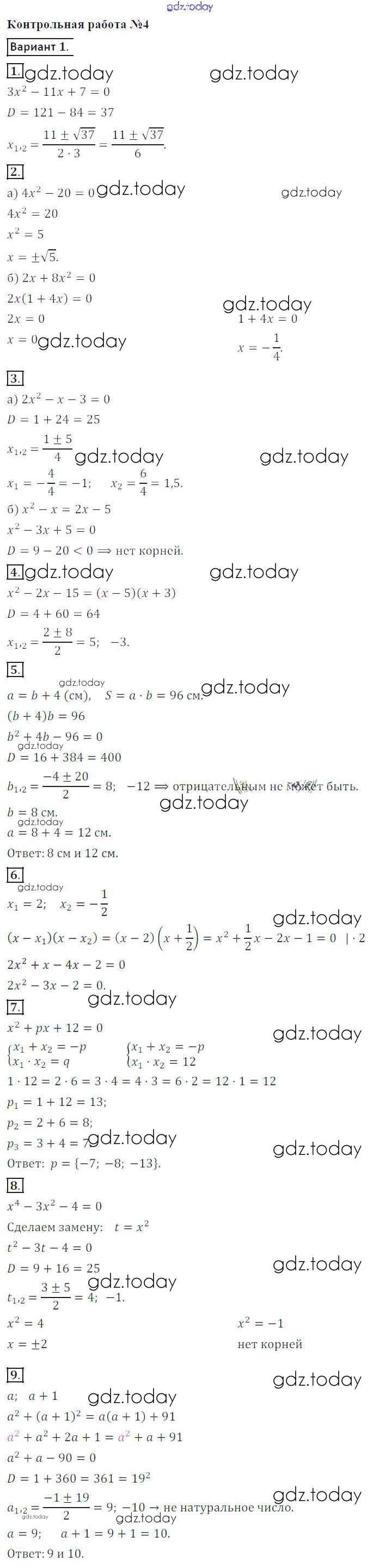 На страницах сайта gdz.today вы найдете учебный и вспомогательный материал, направленный на улучшения знаний школьной программы. ГДЗ - онлайн мир знаний Решение к контрольной работе 4. Варианты 1 Контрольным работам по Алгебре для 8 класса Кузнецова, Минаева Просвещение 2016