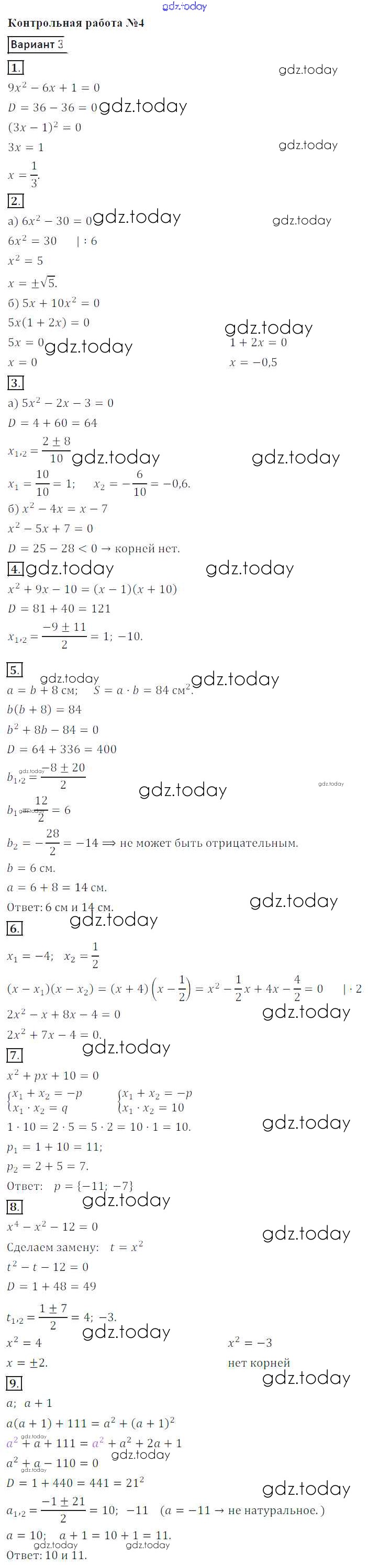 На страницах сайта gdz.today вы найдете учебный и вспомогательный материал, направленный на улучшения знаний школьной программы. ГДЗ - онлайн мир знаний Решение к контрольной работе 4. Варианты 3 Контрольным работам по Алгебре для 8 класса Кузнецова, Минаева Просвещение 2016