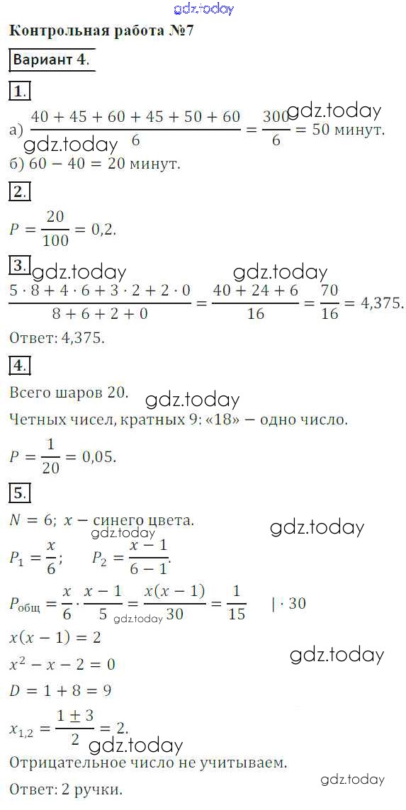 Решение к контрольной работе 5. Варианты
