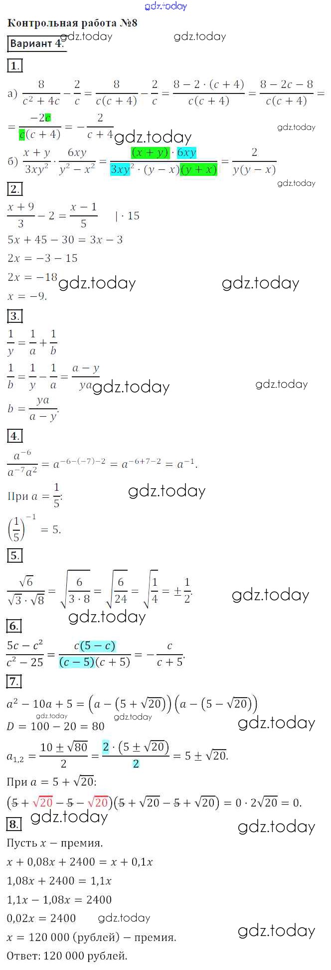 На страницах сайта gdz.today вы найдете учебный и вспомогательный материал, направленный на улучшения знаний школьной программы. ГДЗ - онлайн мир знаний Решение к контрольной работе 8. Варианты 4 Контрольным работам по Алгебре для 8 класса Кузнецова, Минаева Просвещение 2016