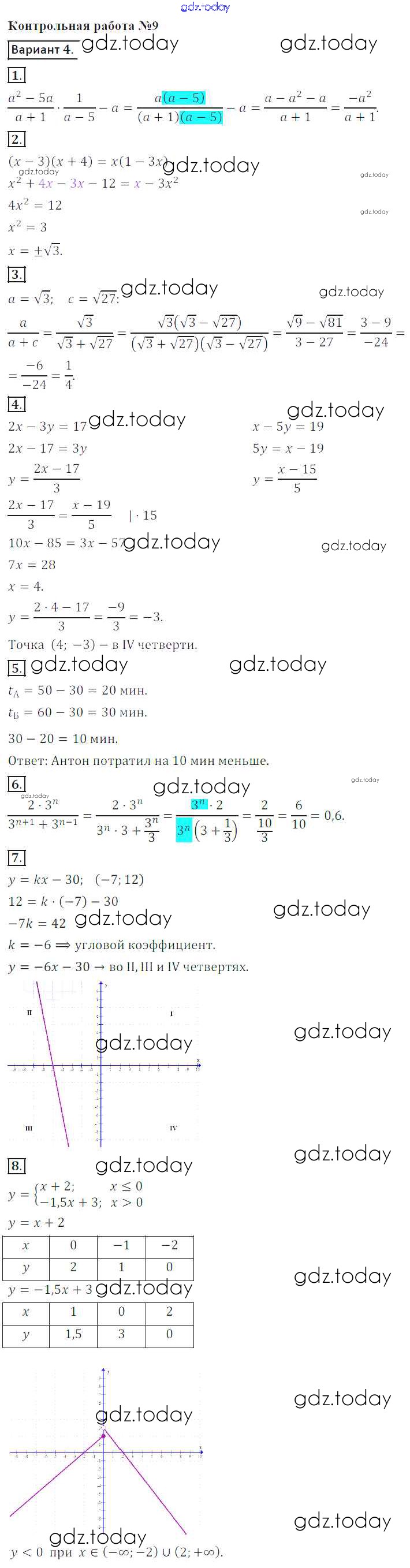 На страницах сайта gdz.today вы найдете учебный и вспомогательный материал, направленный на улучшения знаний школьной программы. ГДЗ - онлайн мир знаний Решение к контрольной работе 9. Варианты 4 Контрольным работам по Алгебре для 8 класса Кузнецова, Минаева Просвещение 2016