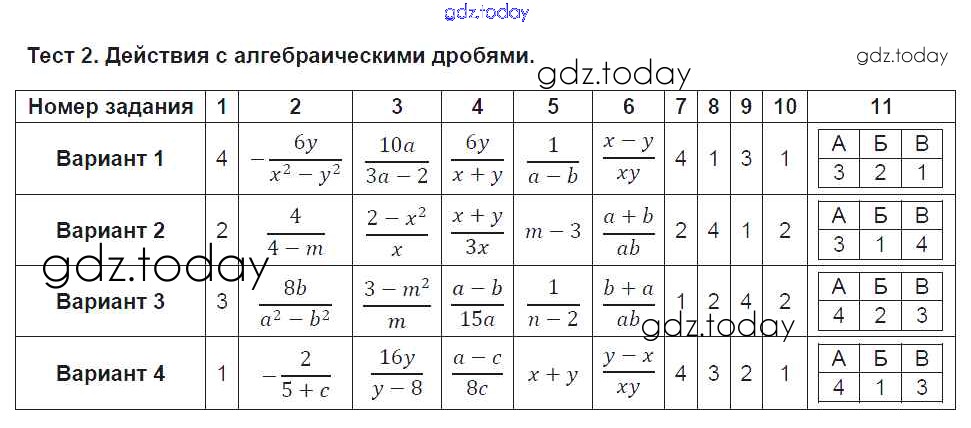 На страницах сайта gdz.today вы найдете учебный и вспомогательный материал, направленный на улучшения знаний школьной программы. ГДЗ - онлайн мир знаний Решение к тестам 2 Тематическим тестам по Алгебре для 8 класса Кузнецова, Минаева Базовый уровень Просвещение 2018