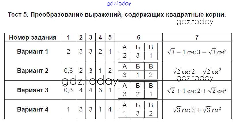 На страницах сайта gdz.today вы найдете учебный и вспомогательный материал, направленный на улучшения знаний школьной программы. ГДЗ - онлайн мир знаний Решение к тестам 5 Тематическим тестам по Алгебре для 8 класса Кузнецова, Минаева Базовый уровень Просвещение 2018