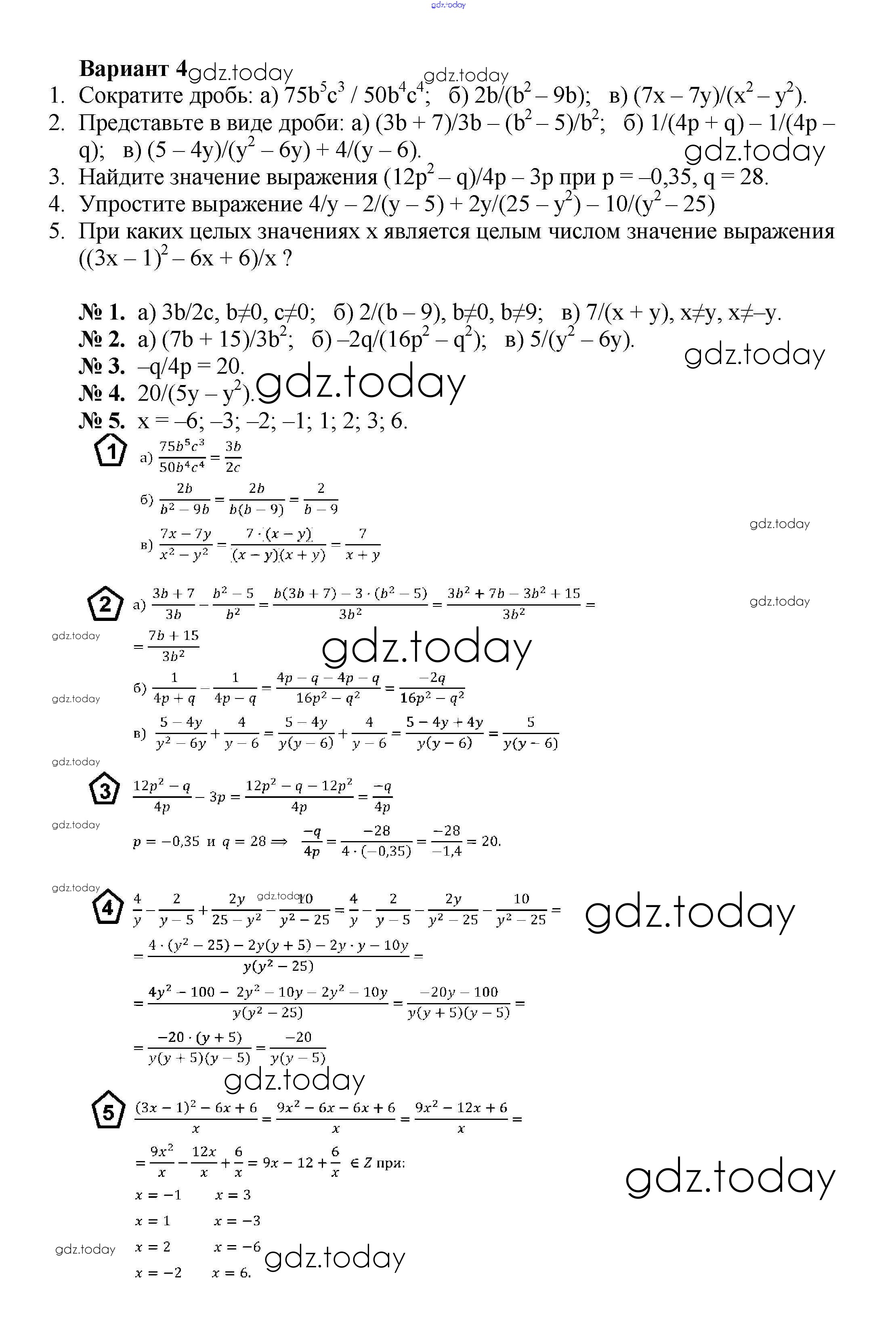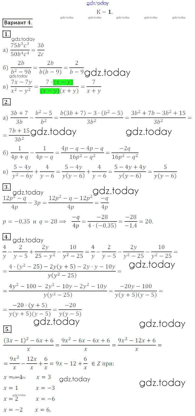 На страницах сайта gdz.today вы найдете учебный и вспомогательный материал, направленный на улучшения знаний школьной программы. ГДЗ - онлайн мир знаний КР №1 Решение к контрольным работам вариант 4 Дидактическим материалам по Алгебре для 8 класса Жохов, Макарычев Просвещение 2014