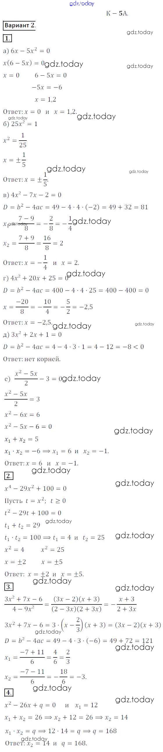 На страницах сайта gdz.today вы найдете учебный и вспомогательный материал, направленный на улучшения знаний школьной программы. ГДЗ - онлайн мир знаний КР №5A Решение к контрольным работам вариант 2 Дидактическим материалам по Алгебре для 8 класса Жохов, Макарычев Просвещение 2014