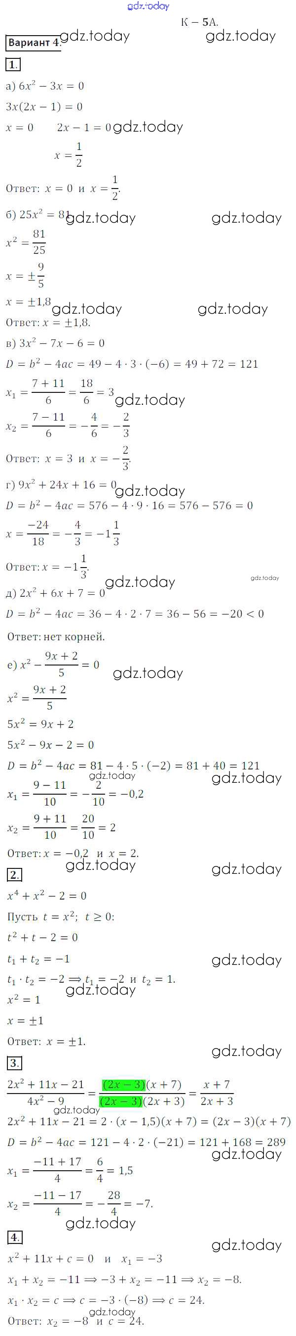 На страницах сайта gdz.today вы найдете учебный и вспомогательный материал, направленный на улучшения знаний школьной программы. ГДЗ - онлайн мир знаний КР №5A Решение к контрольным работам вариант 4 Дидактическим материалам по Алгебре для 8 класса Жохов, Макарычев Просвещение 2014