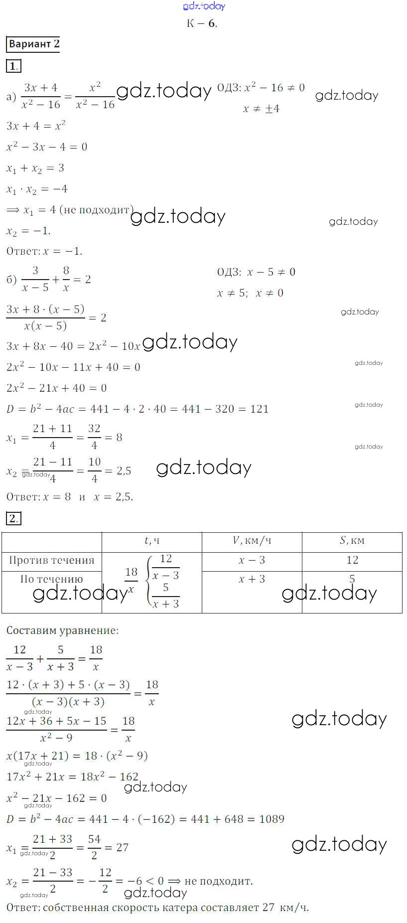 На страницах сайта gdz.today вы найдете учебный и вспомогательный материал, направленный на улучшения знаний школьной программы. ГДЗ - онлайн мир знаний КР №6 Решение к контрольным работам вариант 2 Дидактическим материалам по Алгебре для 8 класса Жохов, Макарычев Просвещение 2014