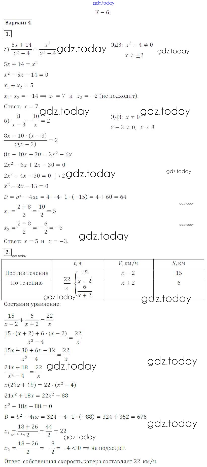 На страницах сайта gdz.today вы найдете учебный и вспомогательный материал, направленный на улучшения знаний школьной программы. ГДЗ - онлайн мир знаний КР №6 Решение к контрольным работам вариант 4 Дидактическим материалам по Алгебре для 8 класса Жохов, Макарычев Просвещение 2014