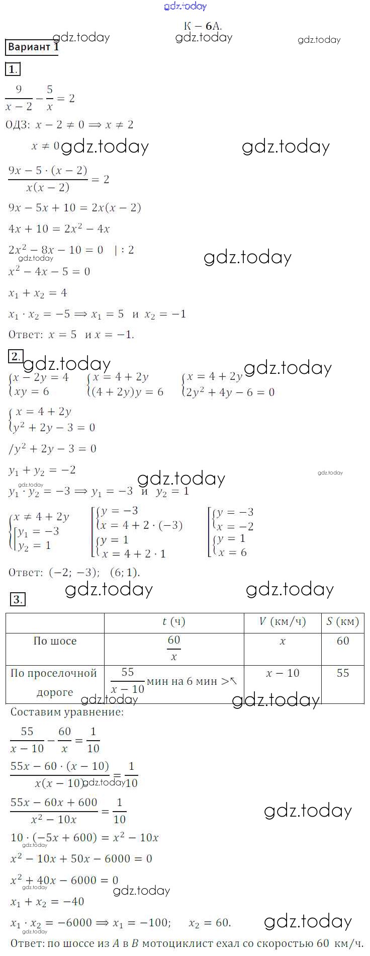 На страницах сайта gdz.today вы найдете учебный и вспомогательный материал, направленный на улучшения знаний школьной программы. ГДЗ - онлайн мир знаний КР №6A Решение к контрольным работам вариант 1 Дидактическим материалам по Алгебре для 8 класса Жохов, Макарычев Просвещение 2014