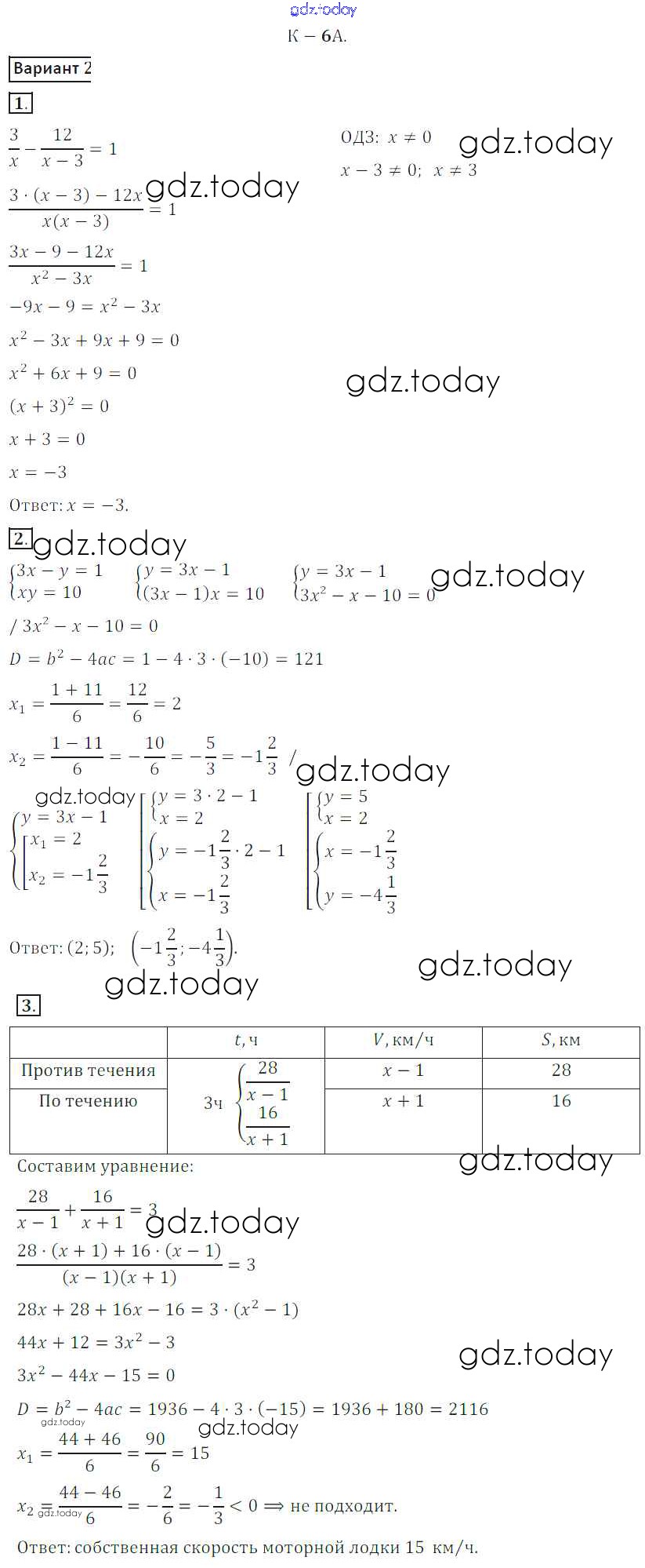 На страницах сайта gdz.today вы найдете учебный и вспомогательный материал, направленный на улучшения знаний школьной программы. ГДЗ - онлайн мир знаний КР №6A Решение к контрольным работам вариант 2 Дидактическим материалам по Алгебре для 8 класса Жохов, Макарычев Просвещение 2014