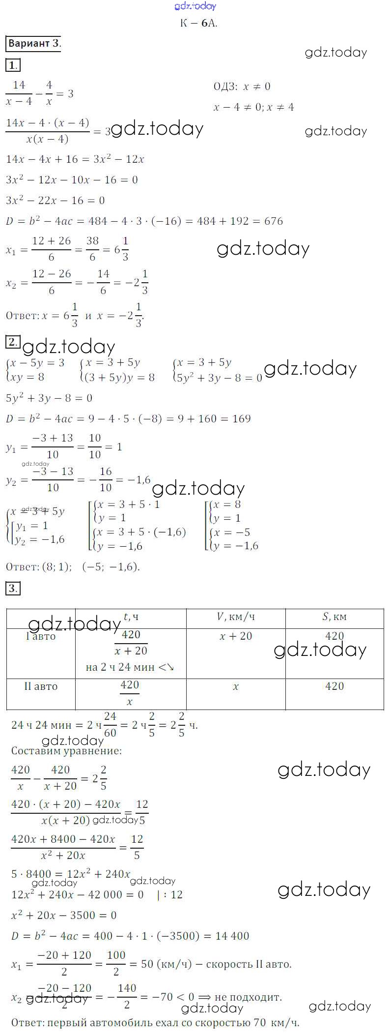 На страницах сайта gdz.today вы найдете учебный и вспомогательный материал, направленный на улучшения знаний школьной программы. ГДЗ - онлайн мир знаний КР №6A Решение к контрольным работам вариант 3 Дидактическим материалам по Алгебре для 8 класса Жохов, Макарычев Просвещение 2014