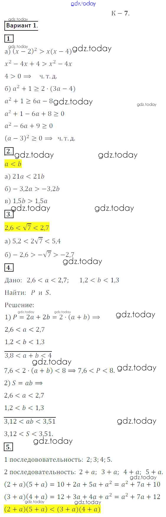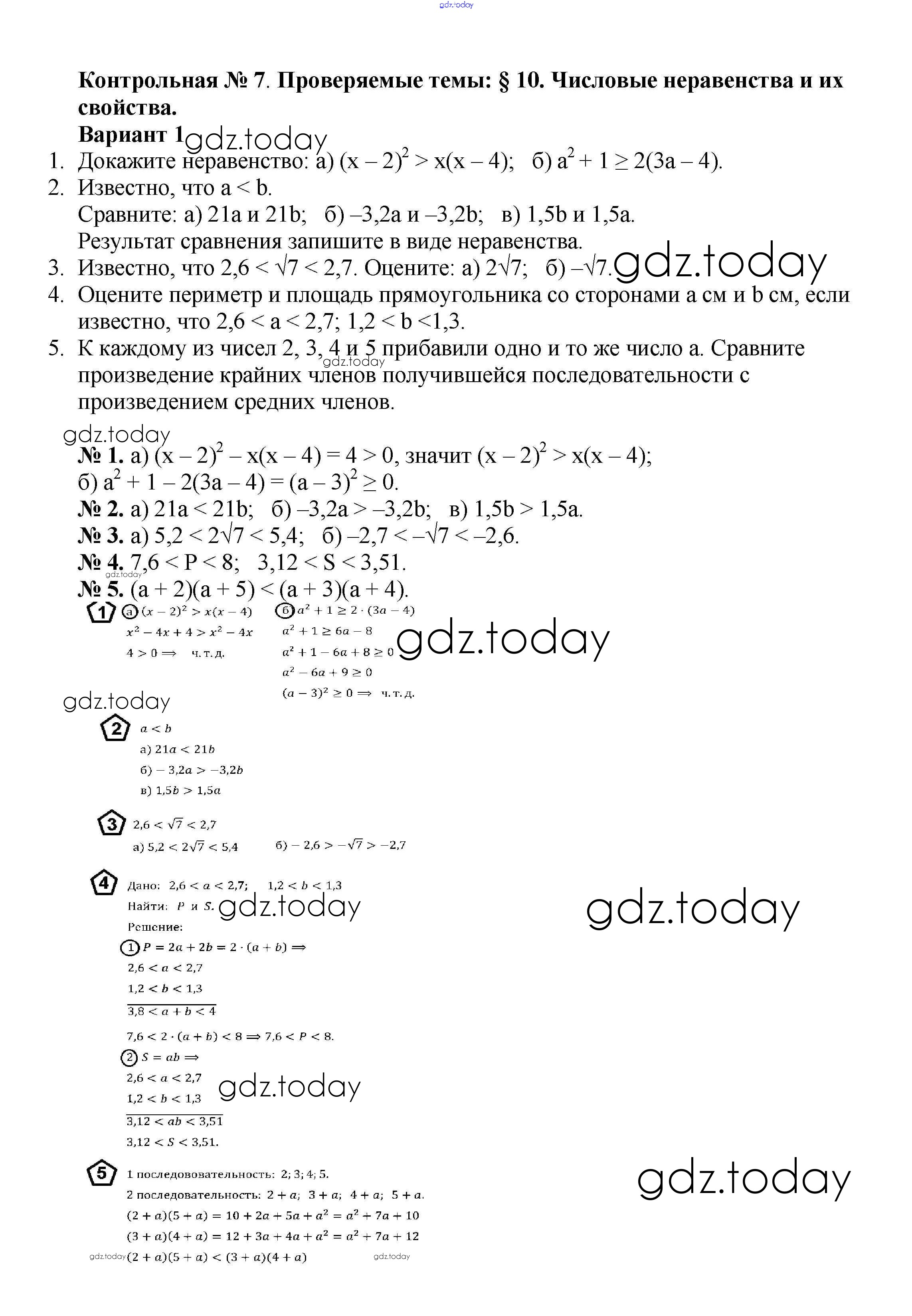 На страницах сайта gdz.today вы найдете учебный и вспомогательный материал, направленный на улучшения знаний школьной программы. ГДЗ - онлайн мир знаний КР №7 Решение к контрольным работам вариант 1 Дидактическим материалам по Алгебре для 8 класса Жохов, Макарычев Просвещение 2014