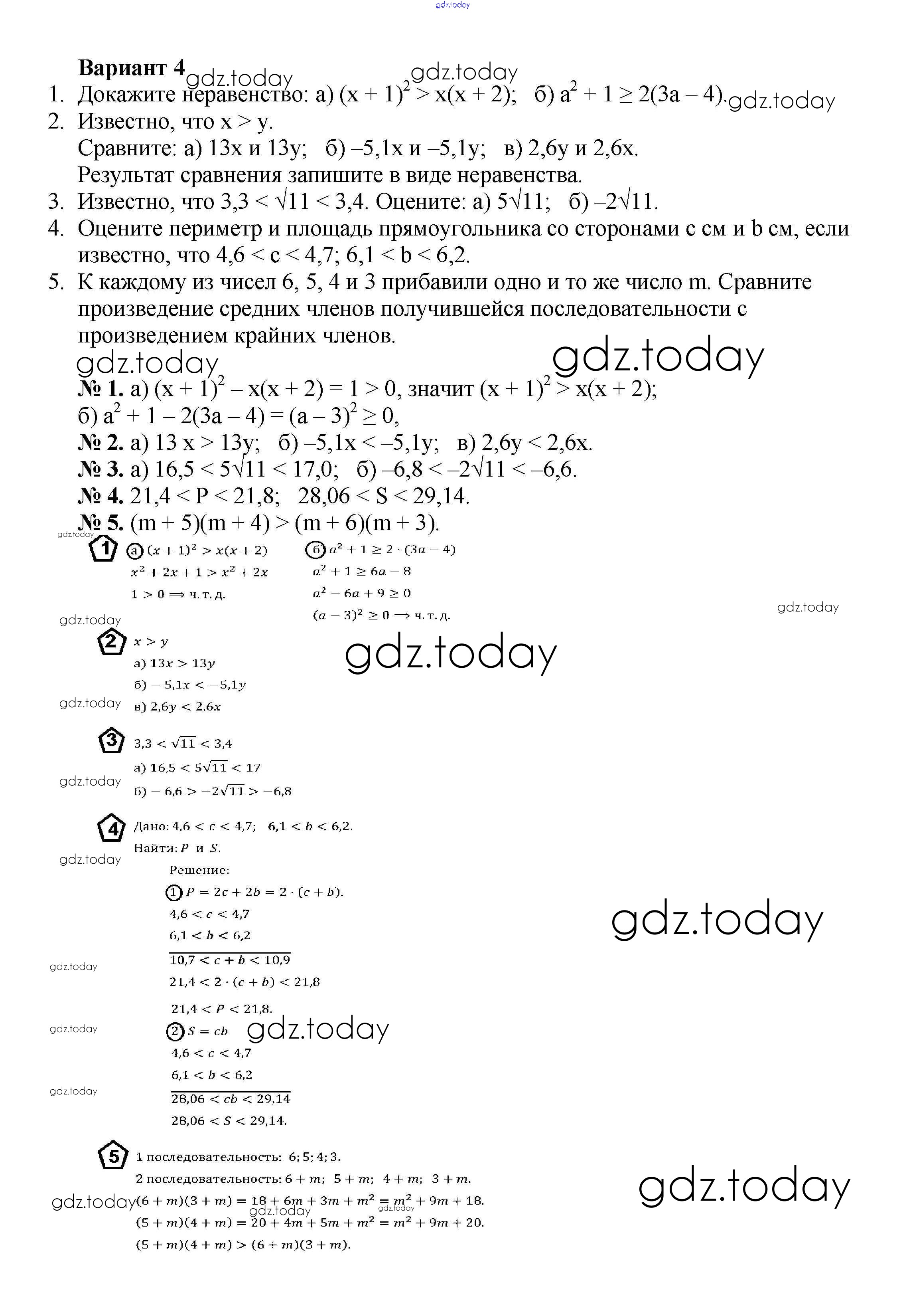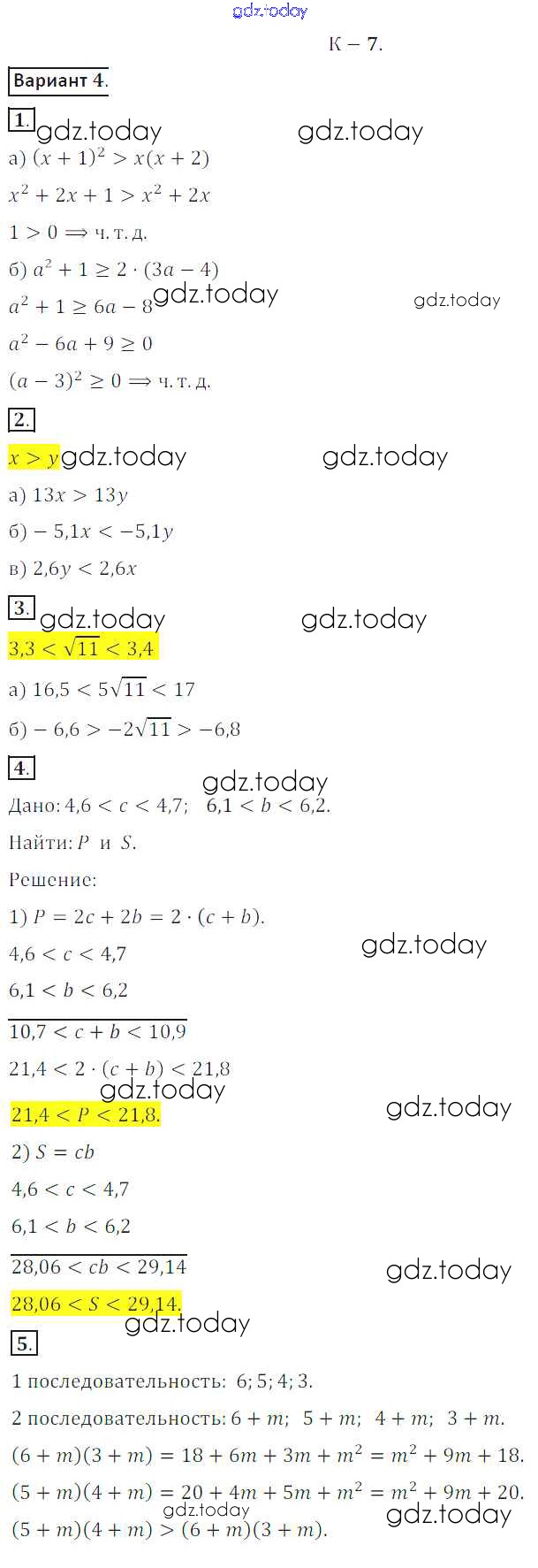 На страницах сайта gdz.today вы найдете учебный и вспомогательный материал, направленный на улучшения знаний школьной программы. ГДЗ - онлайн мир знаний КР №7 Решение к контрольным работам вариант 4 Дидактическим материалам по Алгебре для 8 класса Жохов, Макарычев Просвещение 2014