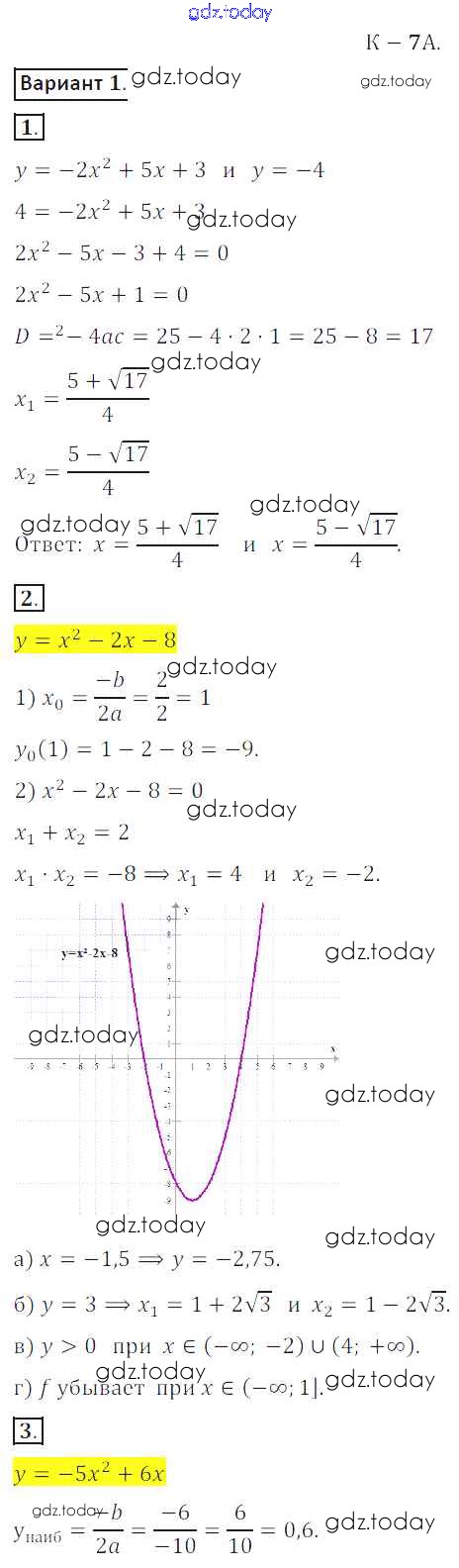 На страницах сайта gdz.today вы найдете учебный и вспомогательный материал, направленный на улучшения знаний школьной программы. ГДЗ - онлайн мир знаний КР №7A Решение к контрольным работам вариант 1 Дидактическим материалам по Алгебре для 8 класса Жохов, Макарычев Просвещение 2014
