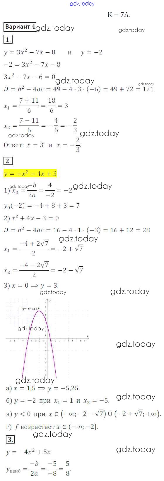 На страницах сайта gdz.today вы найдете учебный и вспомогательный материал, направленный на улучшения знаний школьной программы. ГДЗ - онлайн мир знаний КР №7A Решение к контрольным работам вариант 4 Дидактическим материалам по Алгебре для 8 класса Жохов, Макарычев Просвещение 2014