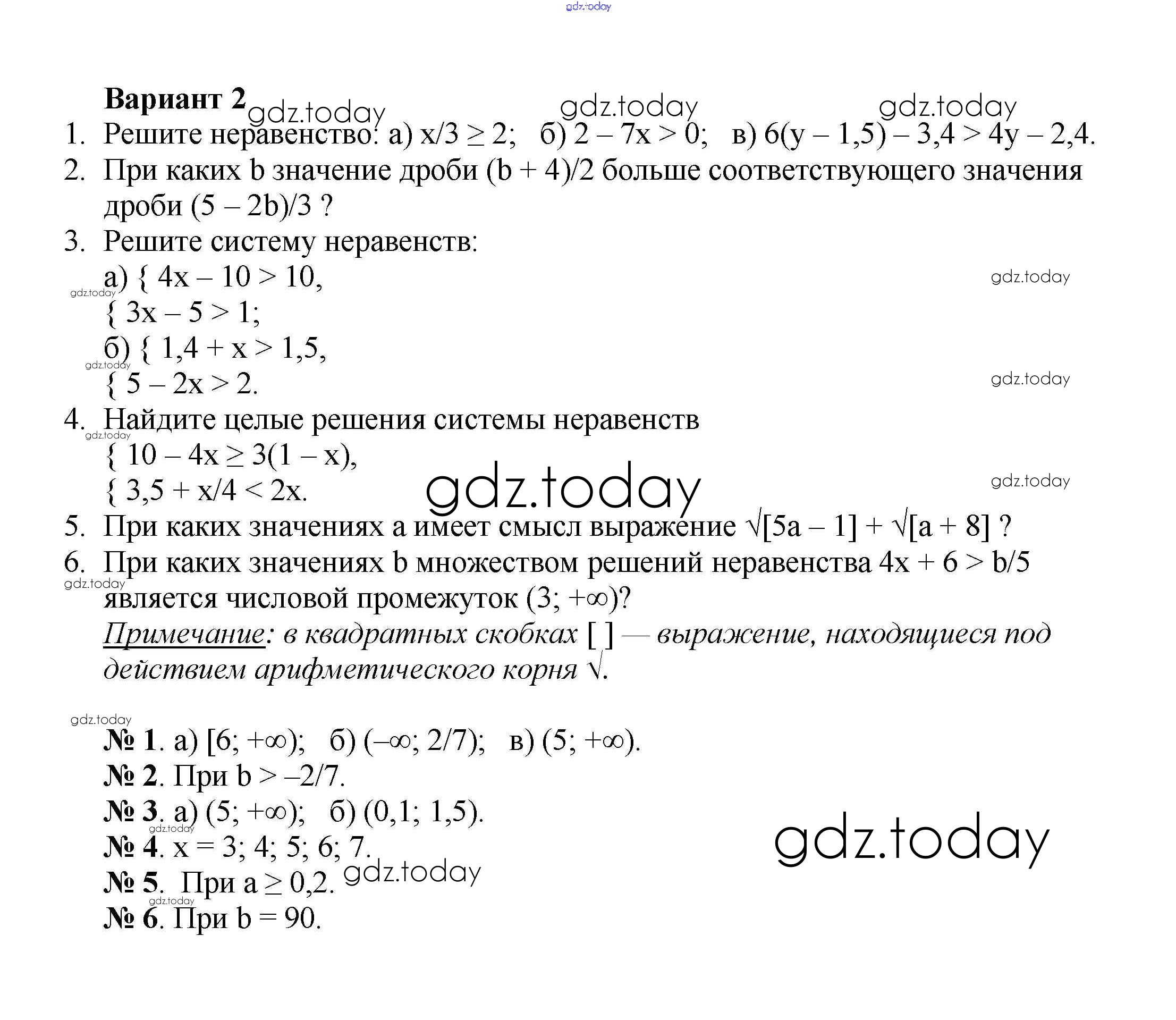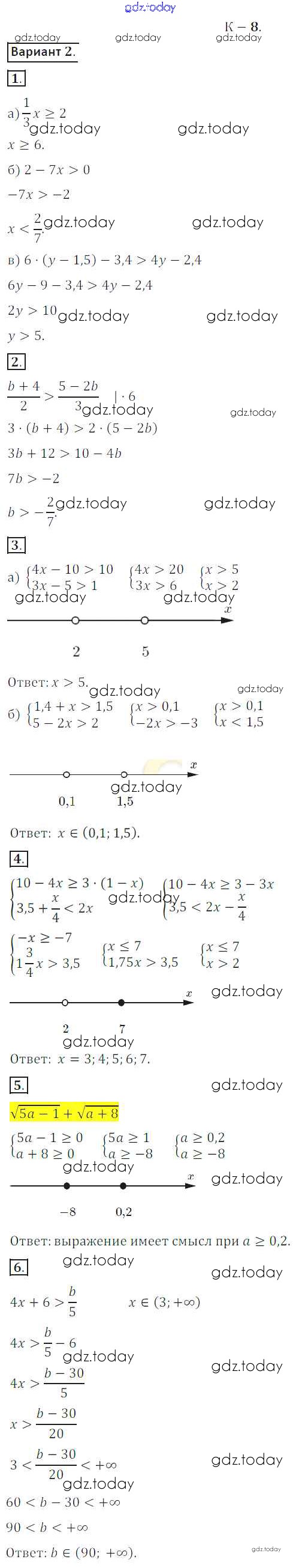 На страницах сайта gdz.today вы найдете учебный и вспомогательный материал, направленный на улучшения знаний школьной программы. ГДЗ - онлайн мир знаний КР №8 Решение к контрольным работам вариант 2 Дидактическим материалам по Алгебре для 8 класса Жохов, Макарычев Просвещение 2014
