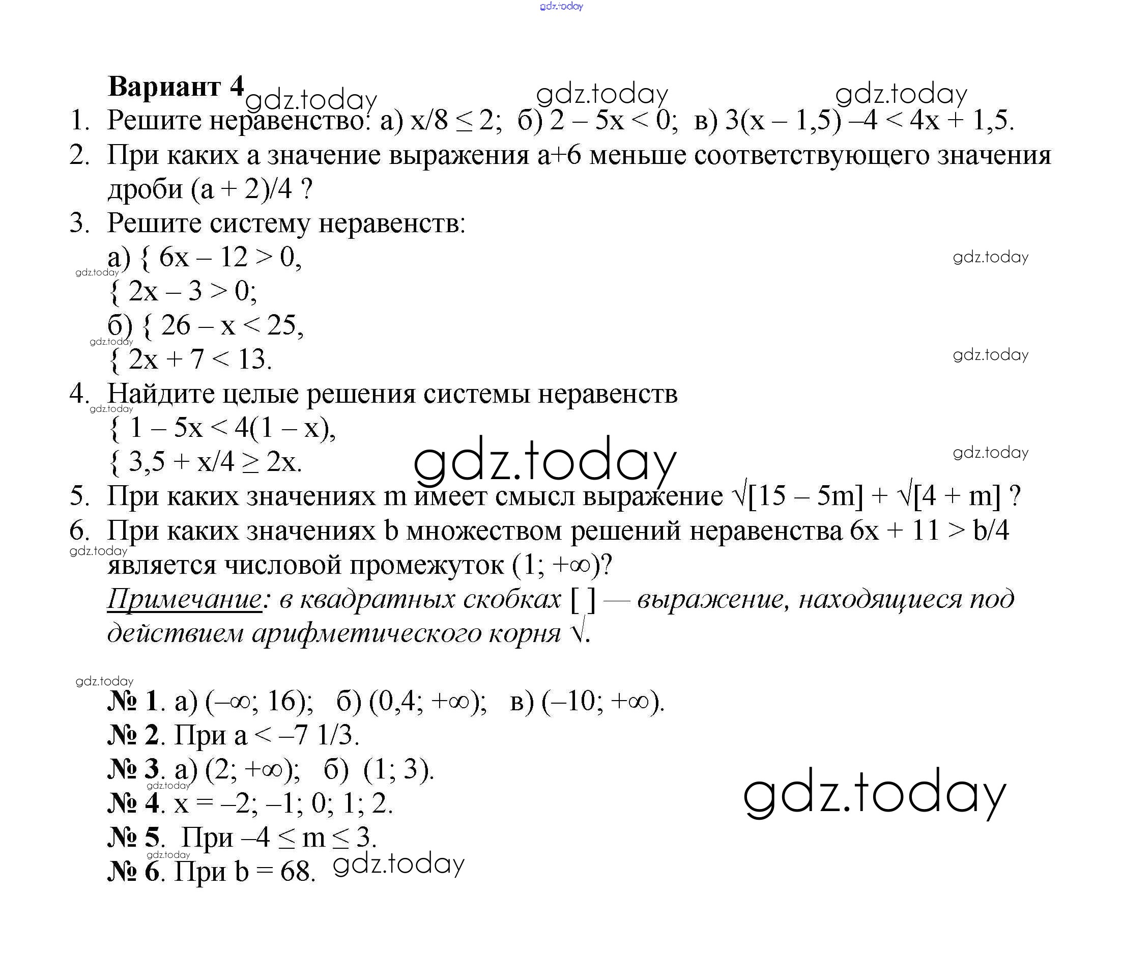 На страницах сайта gdz.today вы найдете учебный и вспомогательный материал, направленный на улучшения знаний школьной программы. ГДЗ - онлайн мир знаний КР №8 Решение к контрольным работам вариант 4 Дидактическим материалам по Алгебре для 8 класса Жохов, Макарычев Просвещение 2014