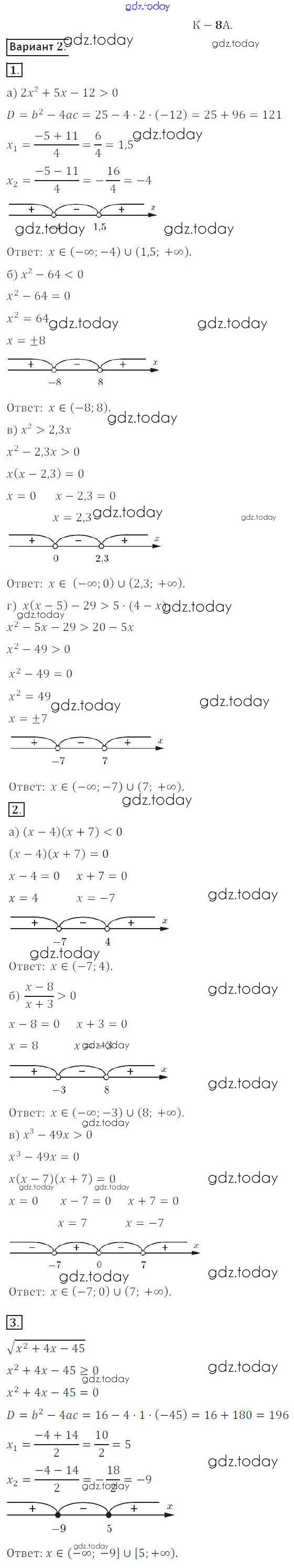 На страницах сайта gdz.today вы найдете учебный и вспомогательный материал, направленный на улучшения знаний школьной программы. ГДЗ - онлайн мир знаний КР №8A Решение к контрольным работам вариант 2 Дидактическим материалам по Алгебре для 8 класса Жохов, Макарычев Просвещение 2014