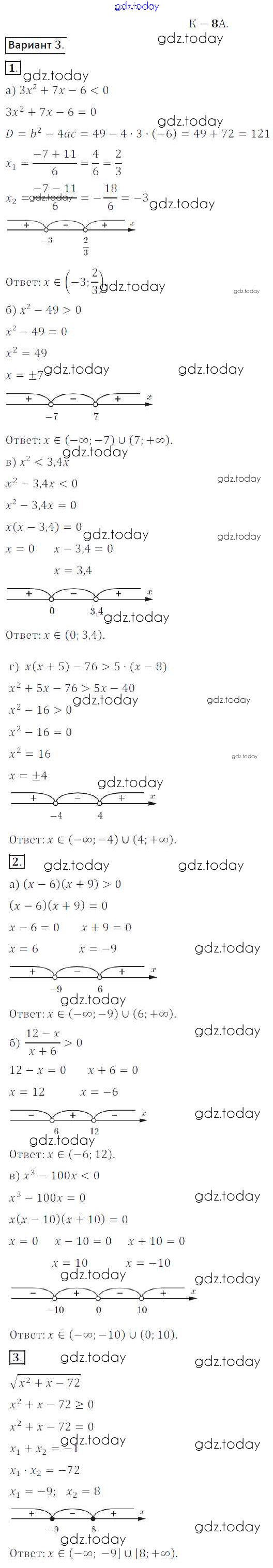 На страницах сайта gdz.today вы найдете учебный и вспомогательный материал, направленный на улучшения знаний школьной программы. ГДЗ - онлайн мир знаний КР №8A Решение к контрольным работам вариант 3 Дидактическим материалам по Алгебре для 8 класса Жохов, Макарычев Просвещение 2014