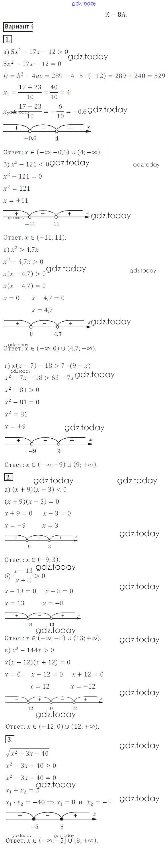 На страницах сайта gdz.today вы найдете учебный и вспомогательный материал, направленный на улучшения знаний школьной программы. ГДЗ - онлайн мир знаний КР №8A Решение к контрольным работам вариант 4 Дидактическим материалам по Алгебре для 8 класса Жохов, Макарычев Просвещение 2014