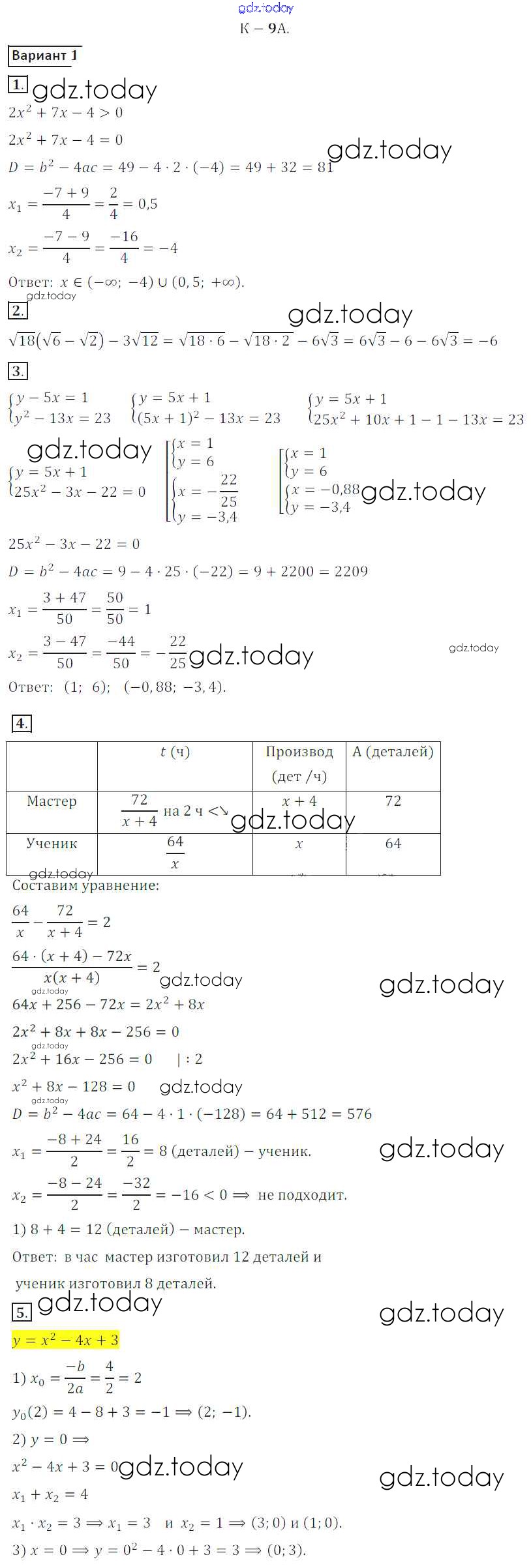 На страницах сайта gdz.today вы найдете учебный и вспомогательный материал, направленный на улучшения знаний школьной программы. ГДЗ - онлайн мир знаний КР №9A Решение к контрольным работам вариант 1 Дидактическим материалам по Алгебре для 8 класса Жохов, Макарычев Просвещение 2014