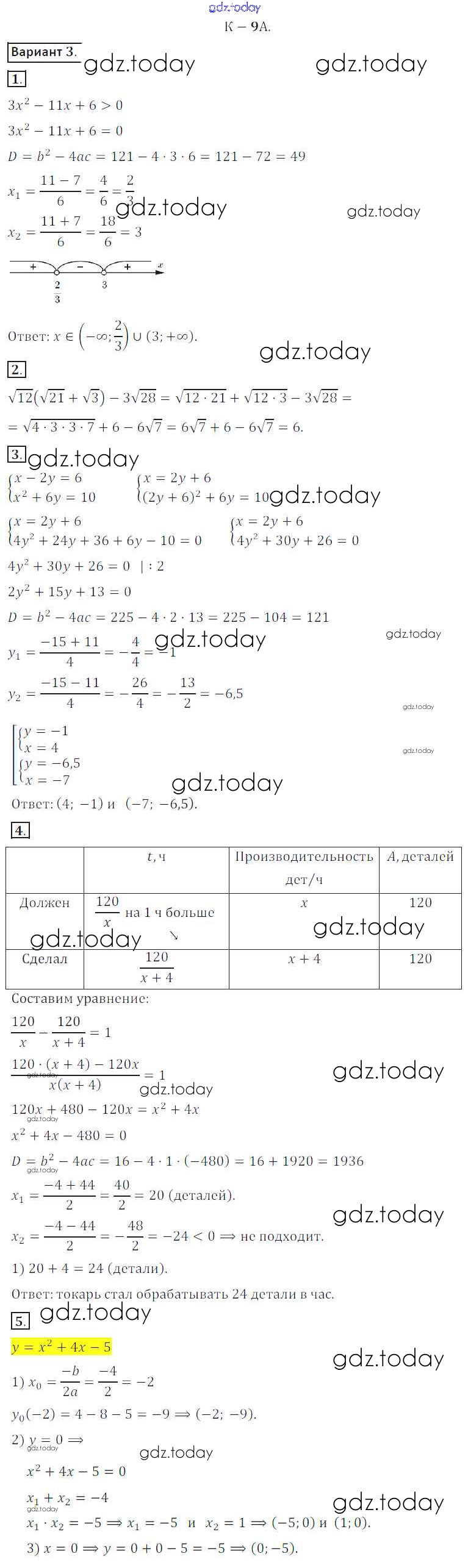 На страницах сайта gdz.today вы найдете учебный и вспомогательный материал, направленный на улучшения знаний школьной программы. ГДЗ - онлайн мир знаний КР №9A Решение к контрольным работам вариант 3 Дидактическим материалам по Алгебре для 8 класса Жохов, Макарычев Просвещение 2014