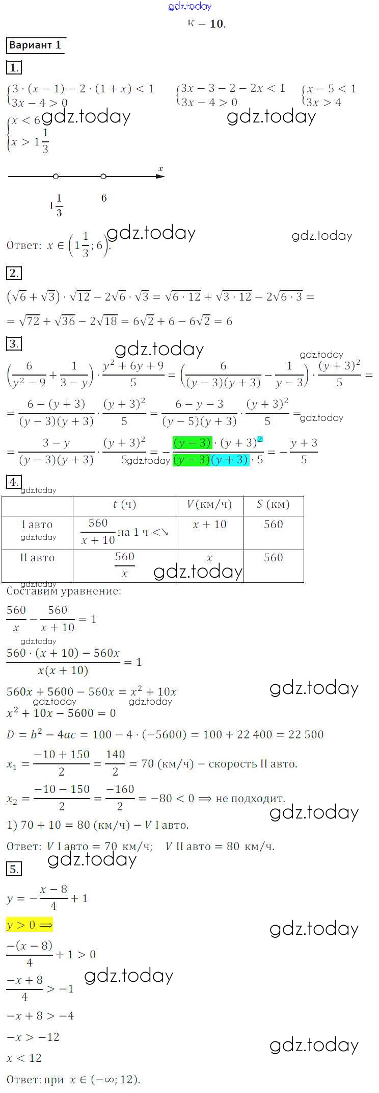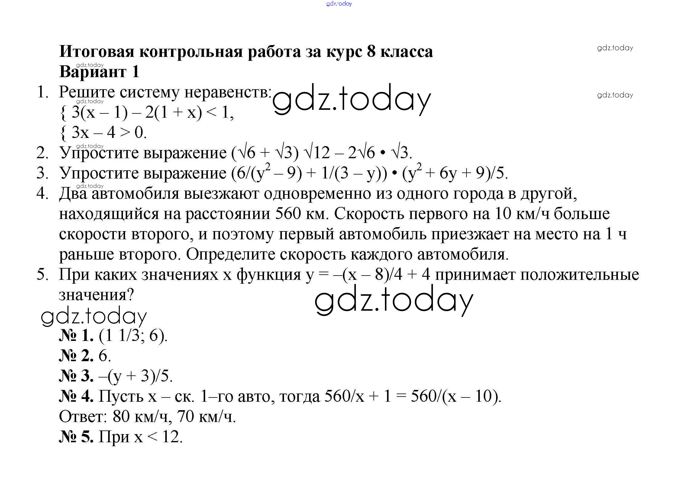 На страницах сайта gdz.today вы найдете учебный и вспомогательный материал, направленный на улучшения знаний школьной программы. ГДЗ - онлайн мир знаний КР №10 Решение к контрольным работам вариант 1 Дидактическим материалам по Алгебре для 8 класса Жохов, Макарычев Просвещение 2014