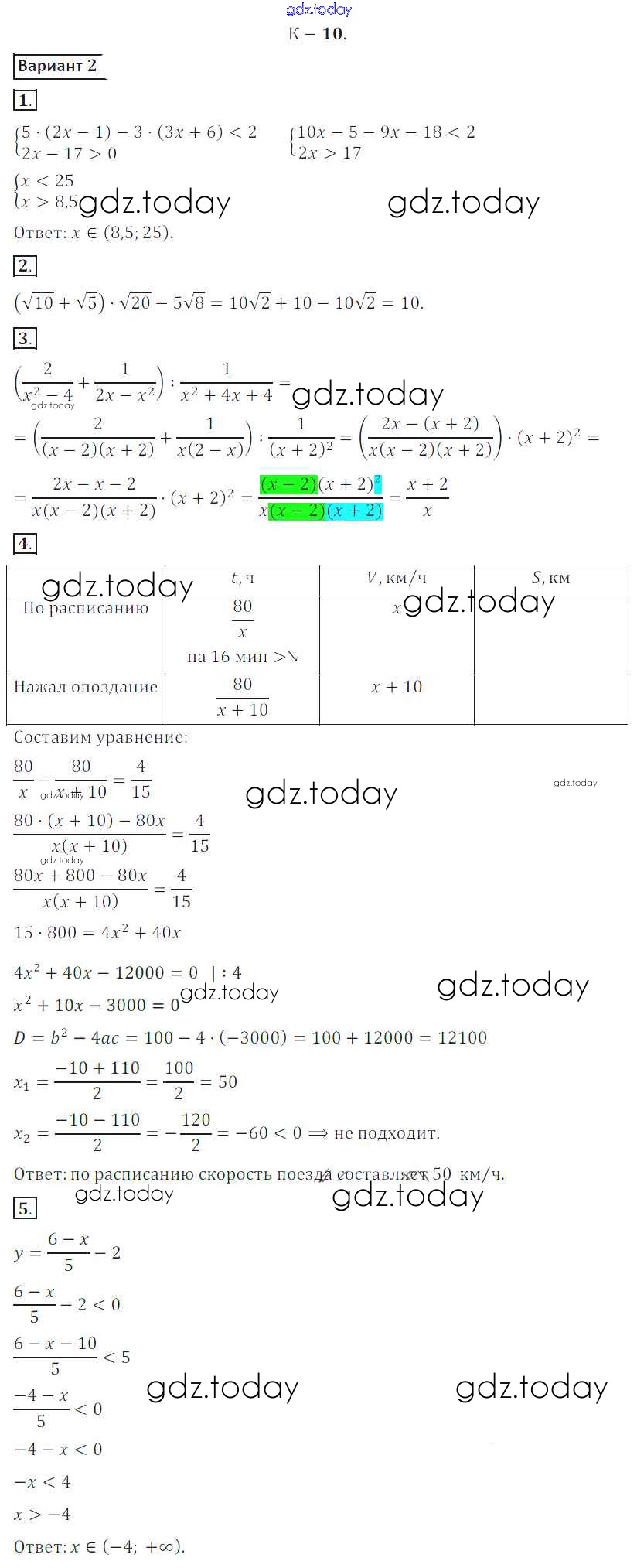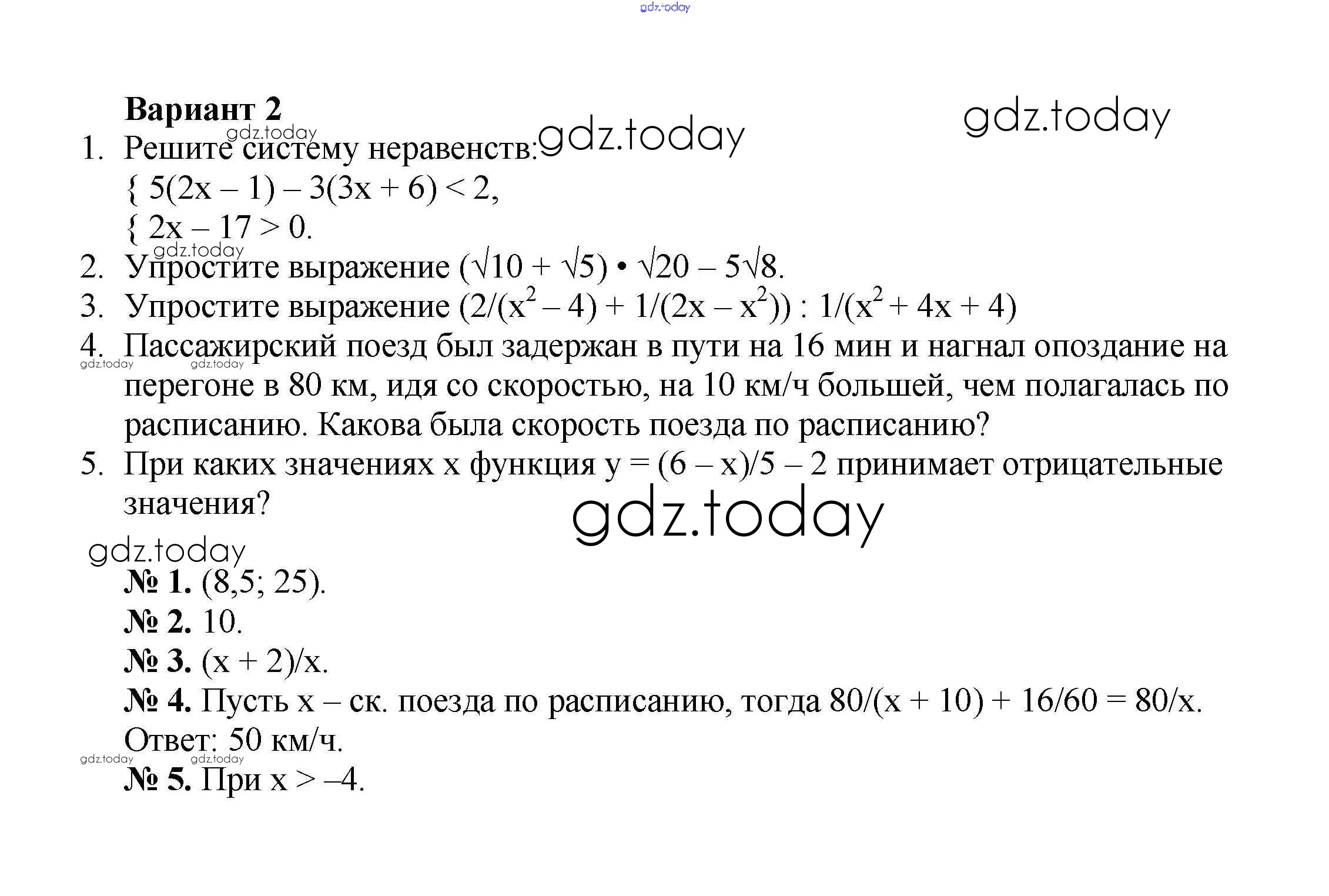 На страницах сайта gdz.today вы найдете учебный и вспомогательный материал, направленный на улучшения знаний школьной программы. ГДЗ - онлайн мир знаний КР №10 Решение к контрольным работам вариант 2 Дидактическим материалам по Алгебре для 8 класса Жохов, Макарычев Просвещение 2014