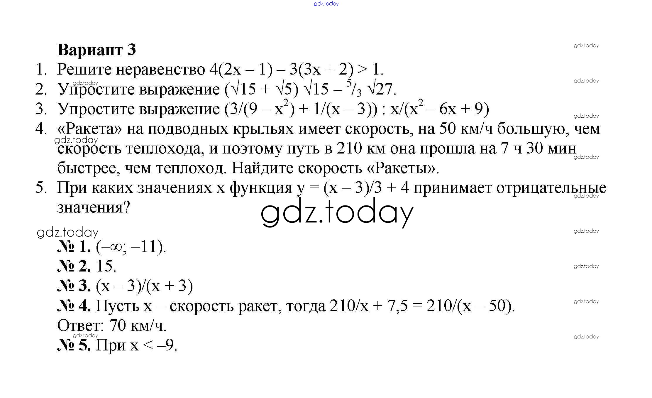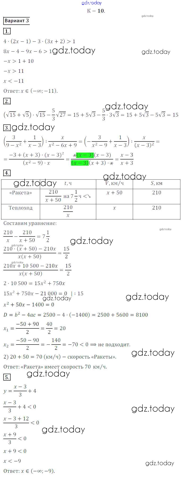 На страницах сайта gdz.today вы найдете учебный и вспомогательный материал, направленный на улучшения знаний школьной программы. ГДЗ - онлайн мир знаний КР №10 Решение к контрольным работам вариант 3 Дидактическим материалам по Алгебре для 8 класса Жохов, Макарычев Просвещение 2014