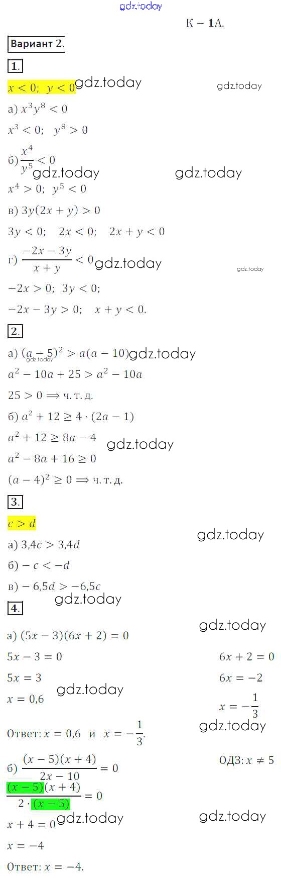 На страницах сайта gdz.today вы найдете учебный и вспомогательный материал, направленный на улучшения знаний школьной программы. ГДЗ - онлайн мир знаний КР №1A Решение к контрольным работам вариант 2 Дидактическим материалам по Алгебре для 8 класса Жохов, Макарычев Просвещение 2014
