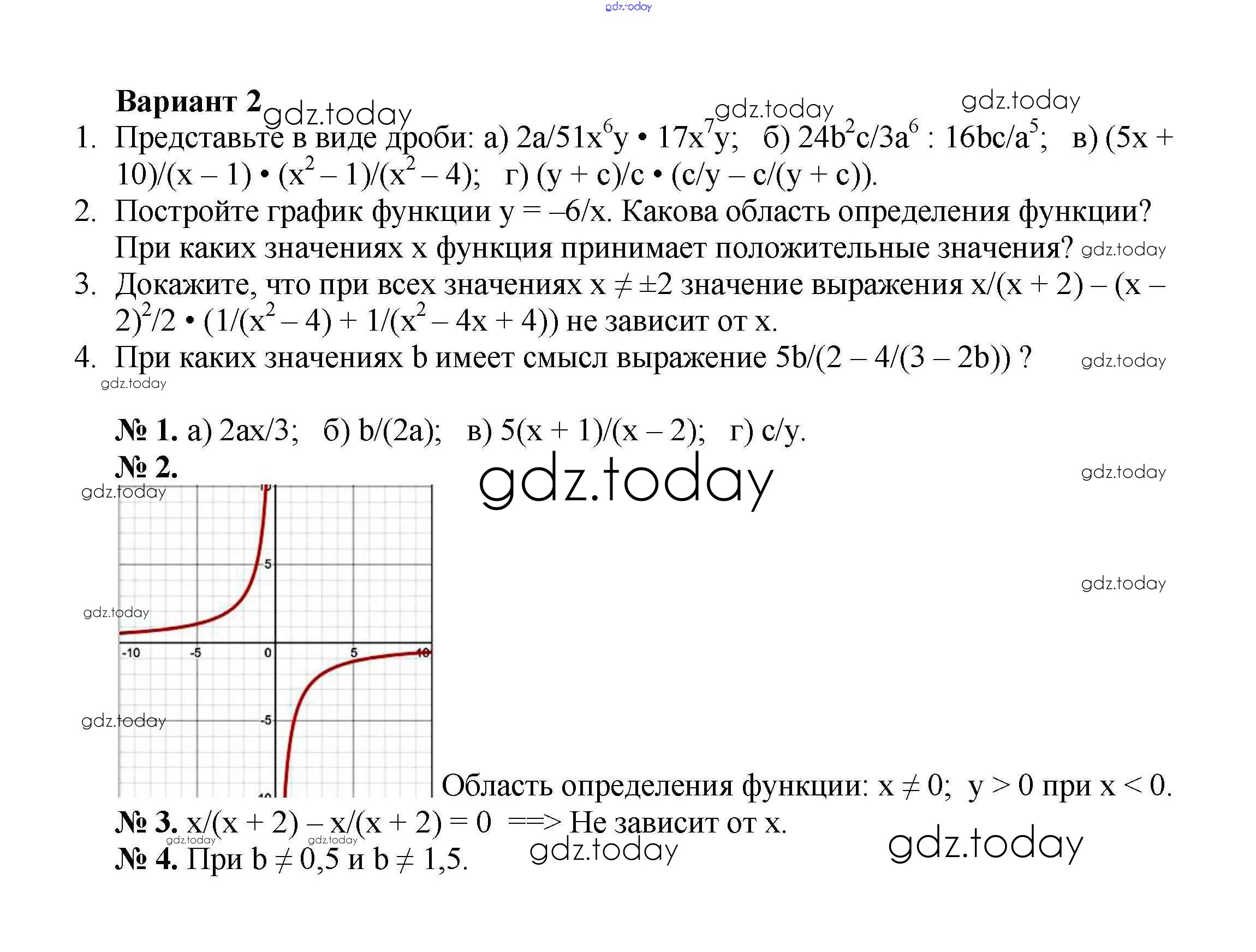 На страницах сайта gdz.today вы найдете учебный и вспомогательный материал, направленный на улучшения знаний школьной программы. ГДЗ - онлайн мир знаний КР №2 Решение к контрольным работам вариант 2 Дидактическим материалам по Алгебре для 8 класса Жохов, Макарычев Просвещение 2014