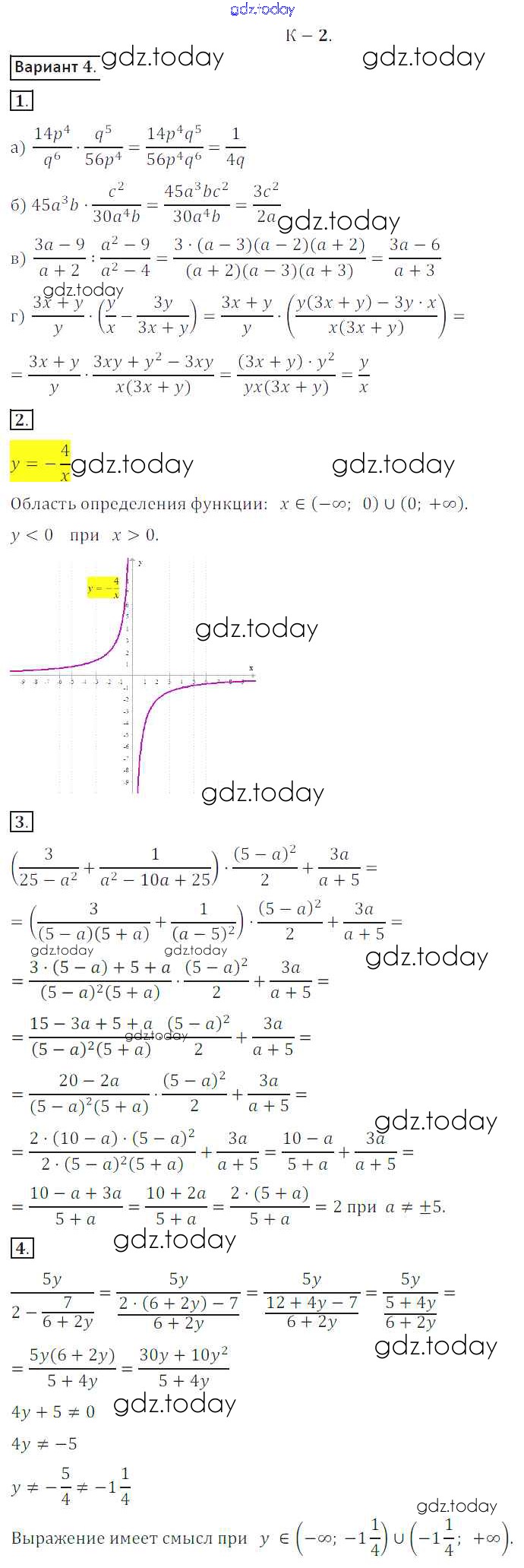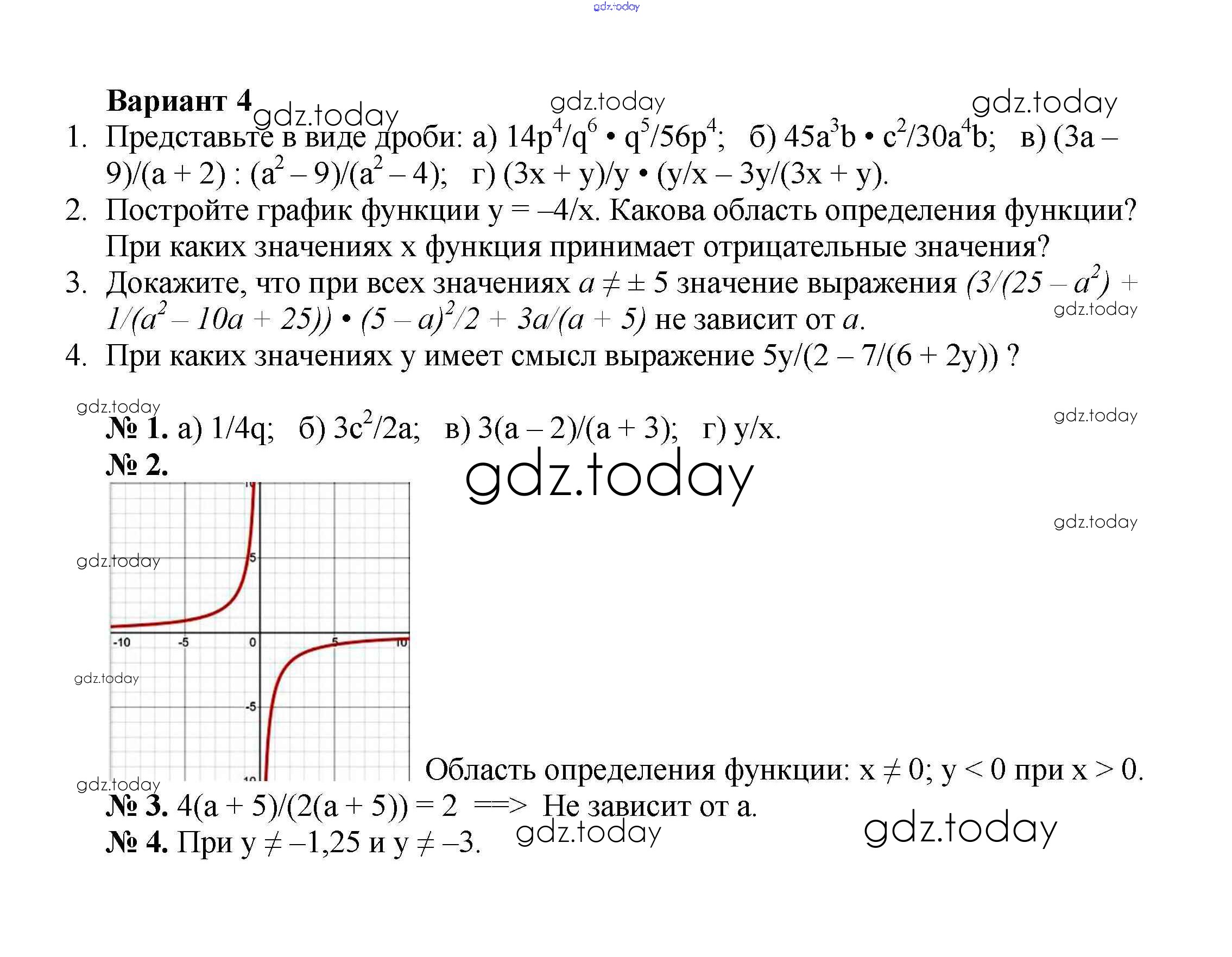 На страницах сайта gdz.today вы найдете учебный и вспомогательный материал, направленный на улучшения знаний школьной программы. ГДЗ - онлайн мир знаний КР №2 Решение к контрольным работам вариант 4 Дидактическим материалам по Алгебре для 8 класса Жохов, Макарычев Просвещение 2014