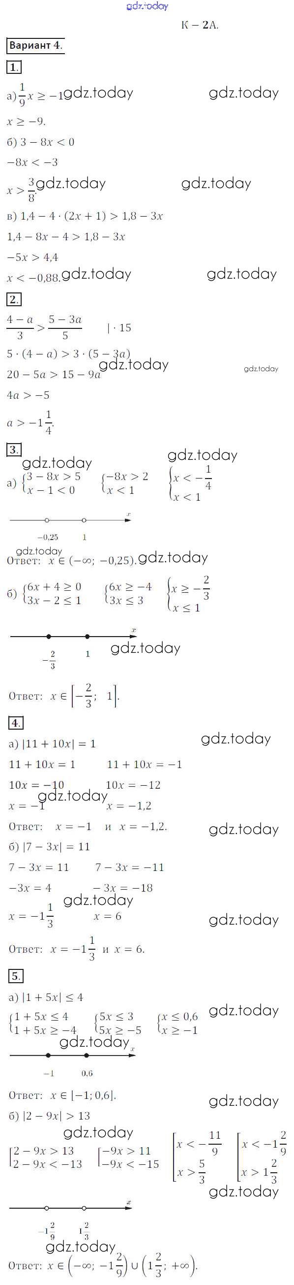 Ответы к КР №2A Решение к контрольным работам вариант 4 Дидактическим материалам по Алгебре для 8 класса Жохов, Макарычев Просвещение 2014
