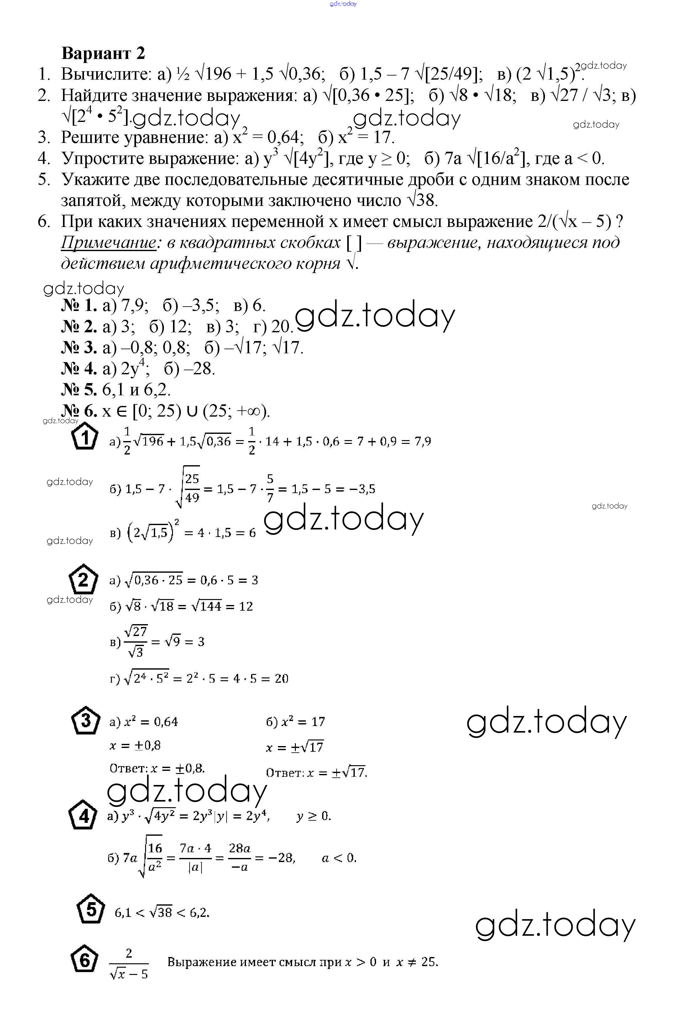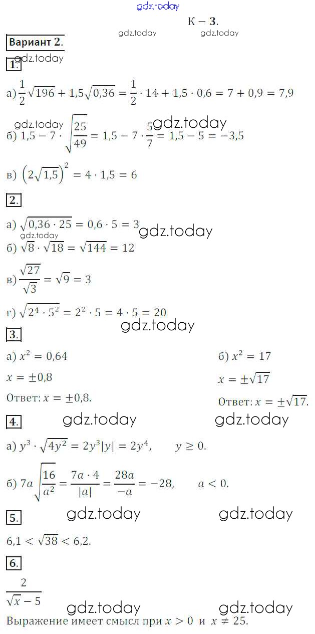 На страницах сайта gdz.today вы найдете учебный и вспомогательный материал, направленный на улучшения знаний школьной программы. ГДЗ - онлайн мир знаний КР №3 Решение к контрольным работам вариант 2 Дидактическим материалам по Алгебре для 8 класса Жохов, Макарычев Просвещение 2014