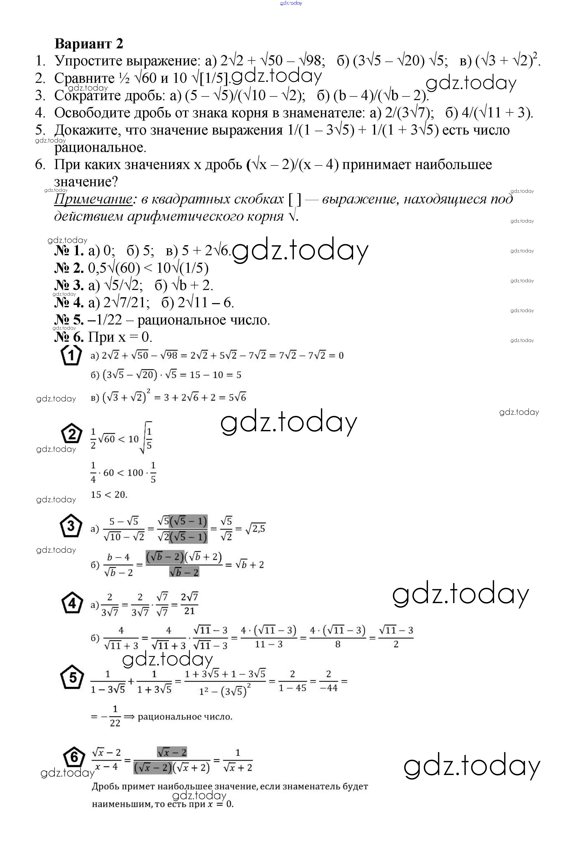На страницах сайта gdz.today вы найдете учебный и вспомогательный материал, направленный на улучшения знаний школьной программы. ГДЗ - онлайн мир знаний КР №4 Решение к контрольным работам вариант 2 Дидактическим материалам по Алгебре для 8 класса Жохов, Макарычев Просвещение 2014