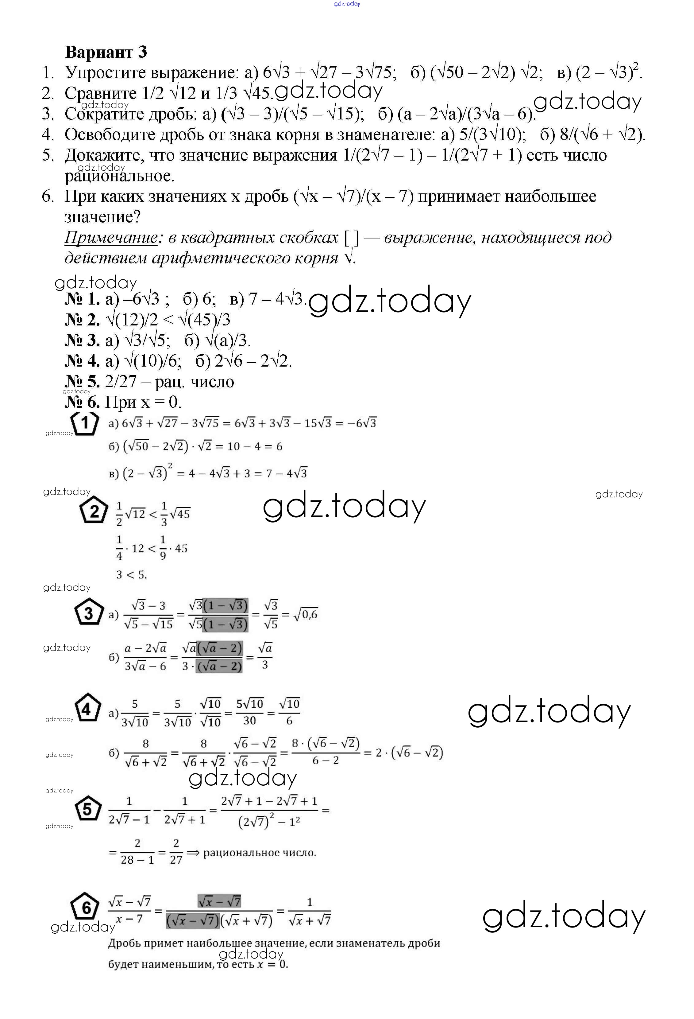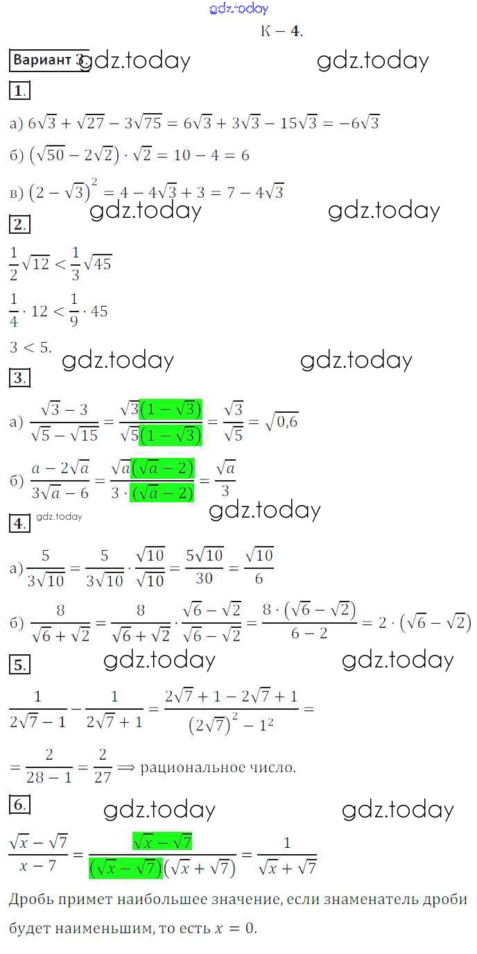 На страницах сайта gdz.today вы найдете учебный и вспомогательный материал, направленный на улучшения знаний школьной программы. ГДЗ - онлайн мир знаний КР №4 Решение к контрольным работам вариант 3 Дидактическим материалам по Алгебре для 8 класса Жохов, Макарычев Просвещение 2014