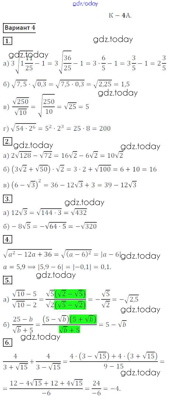 На страницах сайта gdz.today вы найдете учебный и вспомогательный материал, направленный на улучшения знаний школьной программы. ГДЗ - онлайн мир знаний КР №4A Решение к контрольным работам вариант 4 Дидактическим материалам по Алгебре для 8 класса Жохов, Макарычев Просвещение 2014
