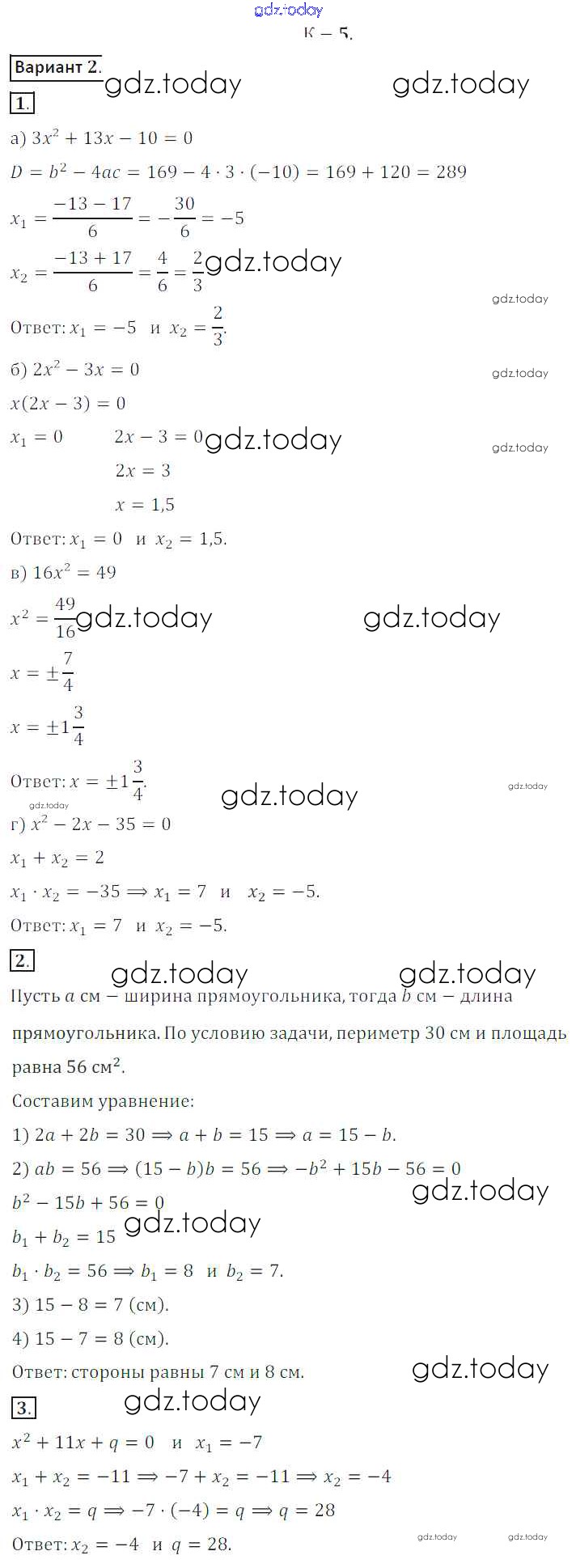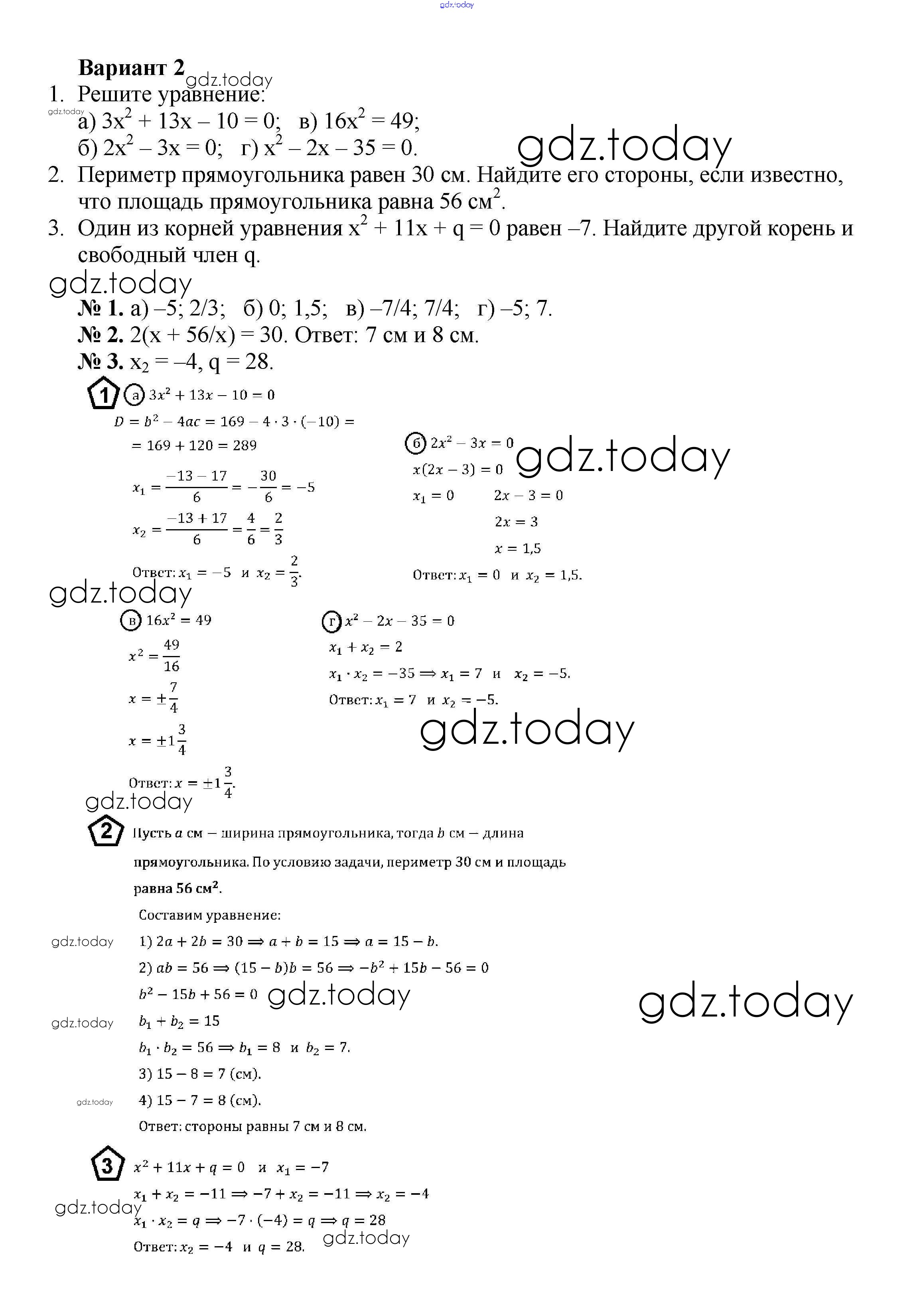 На страницах сайта gdz.today вы найдете учебный и вспомогательный материал, направленный на улучшения знаний школьной программы. ГДЗ - онлайн мир знаний КР №5 Решение к контрольным работам вариант 2 Дидактическим материалам по Алгебре для 8 класса Жохов, Макарычев Просвещение 2014