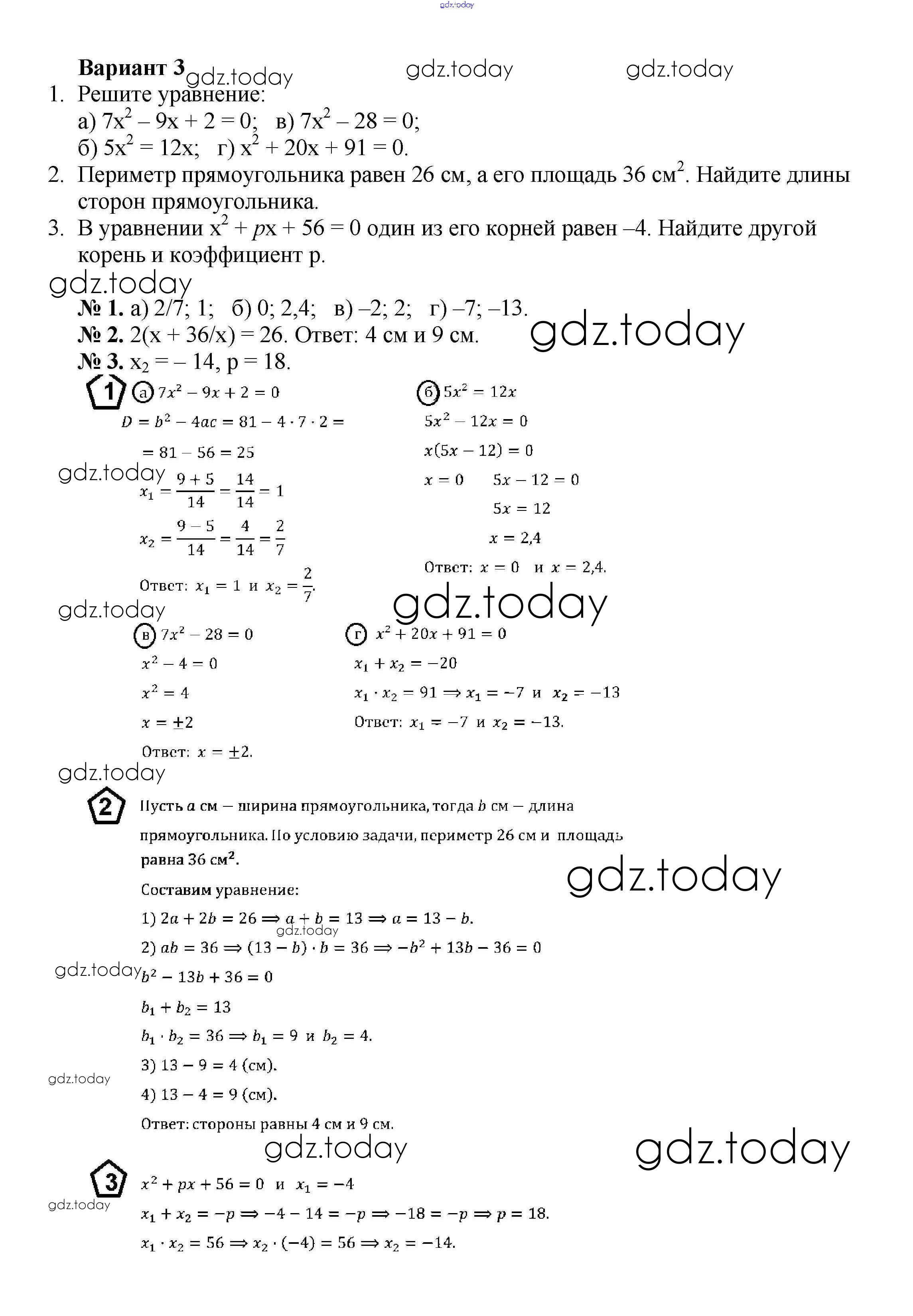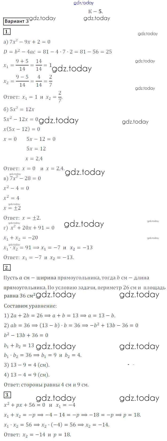 На страницах сайта gdz.today вы найдете учебный и вспомогательный материал, направленный на улучшения знаний школьной программы. ГДЗ - онлайн мир знаний КР №5 Решение к контрольным работам вариант 3 Дидактическим материалам по Алгебре для 8 класса Жохов, Макарычев Просвещение 2014
