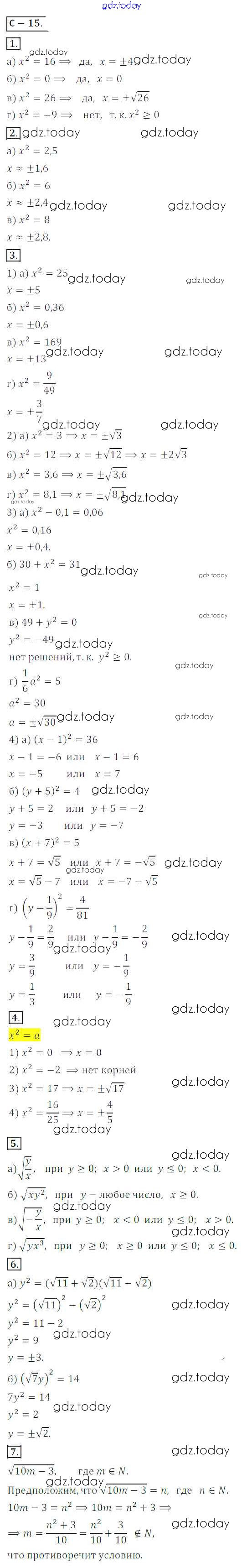 На страницах сайта gdz.today вы найдете учебный и вспомогательный материал, направленный на улучшения знаний школьной программы. ГДЗ - онлайн мир знаний Вариант 1 Решение к самостоятельным работам СР №15 Дидактическим материалам по Алгебре для 8 класса Жохов, Макарычев Просвещение 2014