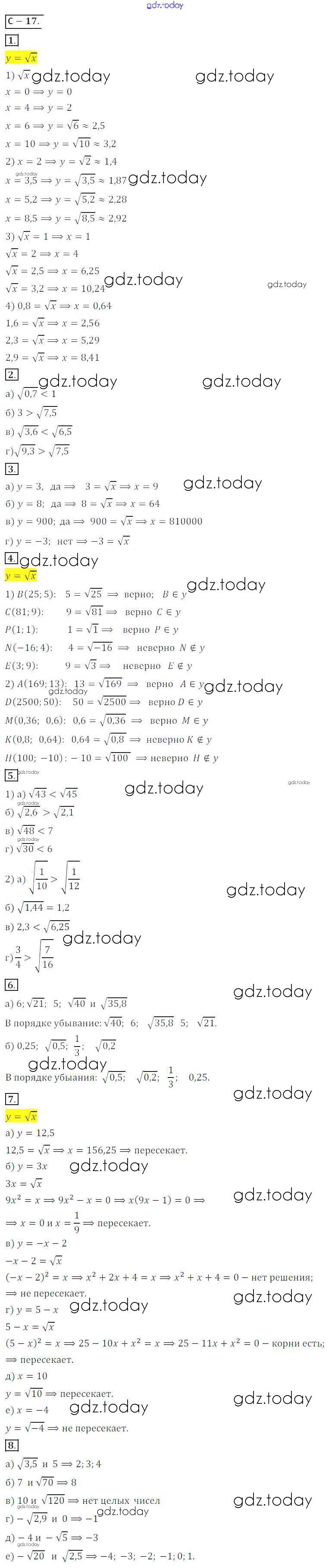 На страницах сайта gdz.today вы найдете учебный и вспомогательный материал, направленный на улучшения знаний школьной программы. ГДЗ - онлайн мир знаний Вариант 1 Решение к самостоятельным работам СР №17 Дидактическим материалам по Алгебре для 8 класса Жохов, Макарычев Просвещение 2014