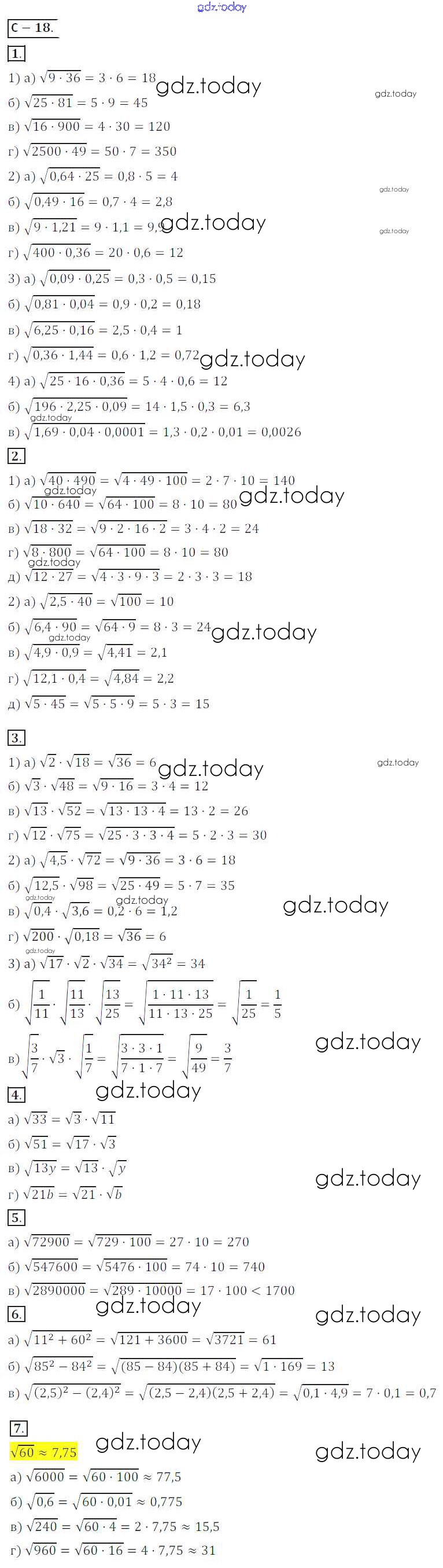 На страницах сайта gdz.today вы найдете учебный и вспомогательный материал, направленный на улучшения знаний школьной программы. ГДЗ - онлайн мир знаний Вариант 1 Решение к самостоятельным работам СР №18 Дидактическим материалам по Алгебре для 8 класса Жохов, Макарычев Просвещение 2014