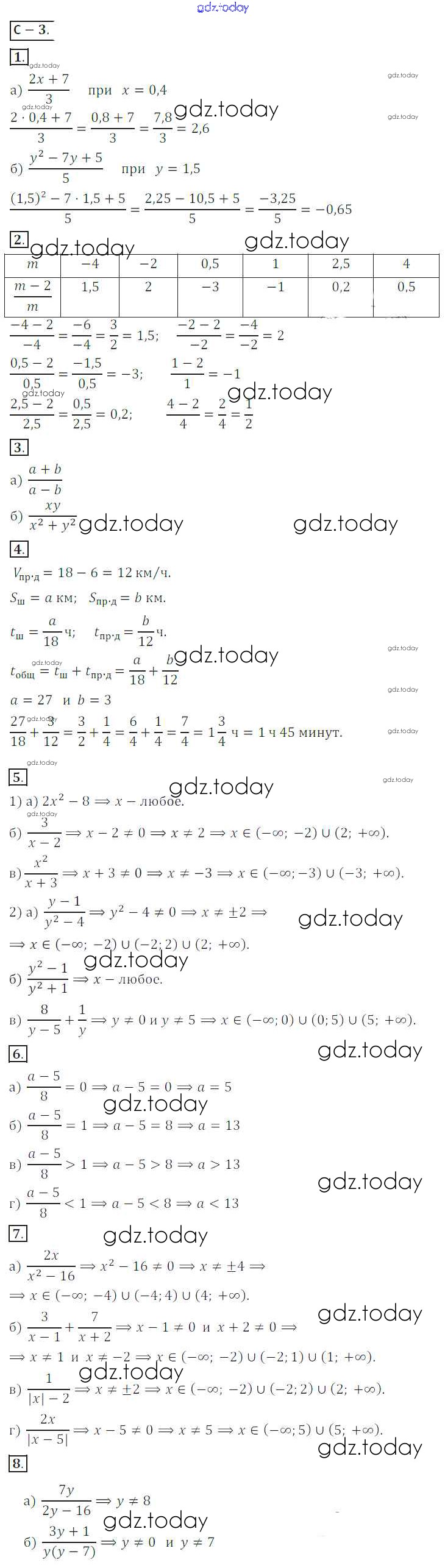 Ответы к Вариант 1 Решение к самостоятельным работам СР №3 Дидактическим материалам по Алгебре для 8 класса Жохов, Макарычев Просвещение 2014