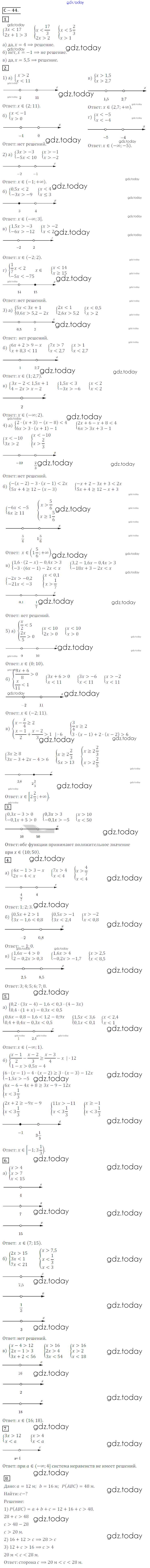 Ответы к Вариант 1 Решение к самостоятельным работам СР №44 Дидактическим материалам по Алгебре для 8 класса Жохов, Макарычев Просвещение 2014
