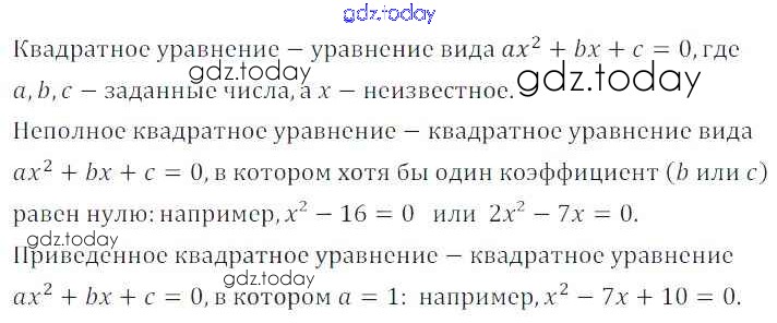 На страницах сайта gdz.today вы найдете учебный и вспомогательный материал, направленный на улучшения знаний школьной программы. ГДЗ - онлайн мир знаний Квадратные уравнения Решение к итоговому повторению (под ред. Тихонового) 1 Дидактическим материалам по Алгебре для 8 класса Жохов, Макарычев Просвещение 2014